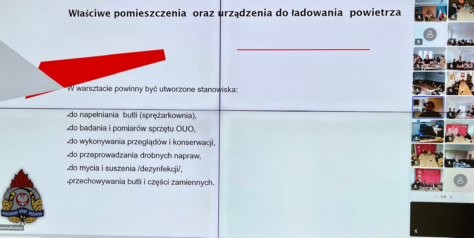 W dniach 21 - 23 października 2025 r. w Jednostkach Ratowniczo – Gaśniczych oraz w Stanowiskach Kierowania woj. pomorskiego odbyło się kolejne szkolenie wideokonferencyjne w ramach doskonalenia zawodowego. W trzydniowych zajęciach wzięło udział łącznie 849 osób, a ich głównym tematem był „SOUO – budowa, konserwacja, przeglądy”.