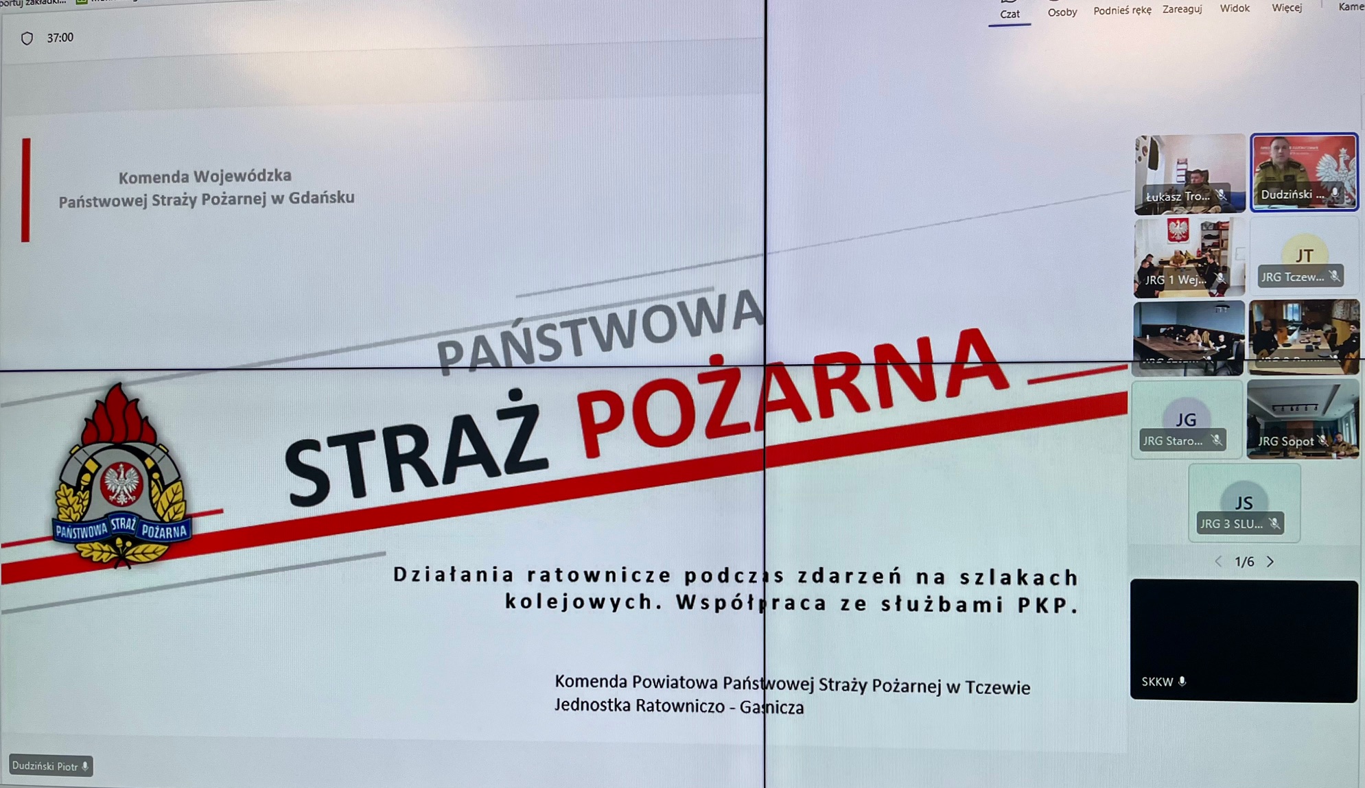 W dniach 5 – 4 grudnia 2025 r. w Jednostkach Ratowniczo – Gaśniczych oraz w Stanowiskach Kierowania woj. pomorskiego odbyło się kolejne szkolenie wideokonferencyjne w ramach doskonalenia zawodowego. W trzydniowych zajęciach wzięło udział łącznie 839 osób, a ich głównym tematem były „Działania ratownicze podczas zdarzeń na szlakach kolejowych”.
