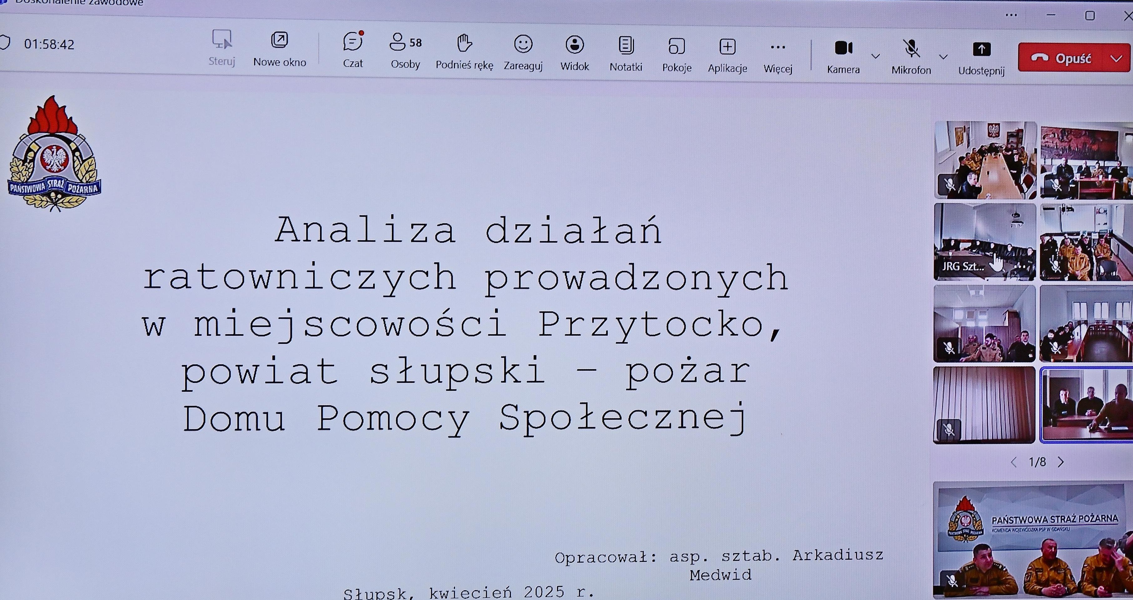 W trzydniowych zajęciach wzięło udział łącznie 871 osób, a ich głównym tematem był „Pożar Domu Pomocy Społecznej w Przytocku - analiza zdarzenia”. Prezentacja została przygotowana przez asp. sztab. Arkadiusz Medwid – zastępcę dowódcy JRG 2 w Słupsku oraz dowódców zmian JRG 2 Słupsk. Podczas zajęć doskonalenia zawodowego omówiona została analiza „Pożar domu Pomocy Społecznej w Przytocku”. Ze względu na charakter budynku i przebywających w nim pensjonariuszy, działania miały specyficzny i trudny charakter. W pożarze zginęła jedna osoba. Dziękujemy wszystkim uczestnikom za zaangażowanie!