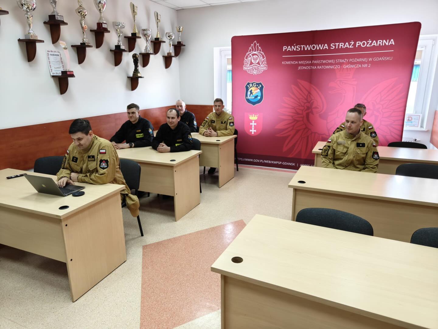 W dniach 14-16 kwietnia 2026 roku w Jednostkach Ratowniczo – Gaśniczych oraz w Stanowiskach Kierowania woj. pomorskiego odbyło się szkolenie wideokonferencyjne w ramach doskonalenia zawodowego. W trzydniowych zajęciach wzięły udział łącznie 794 osoby, a ich głównym tematem była „Zasady BHP w pracy strażaka - wybrane przykłady na podstawie obowiązującego rozporządzenia”.