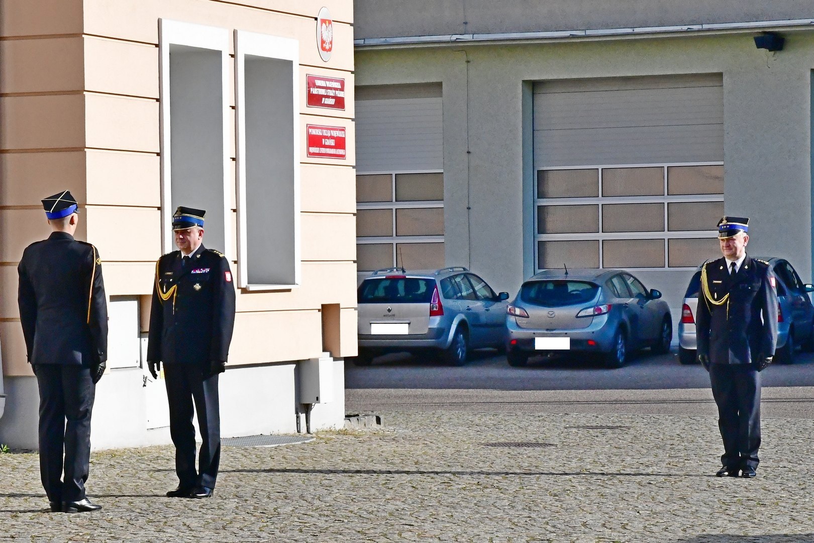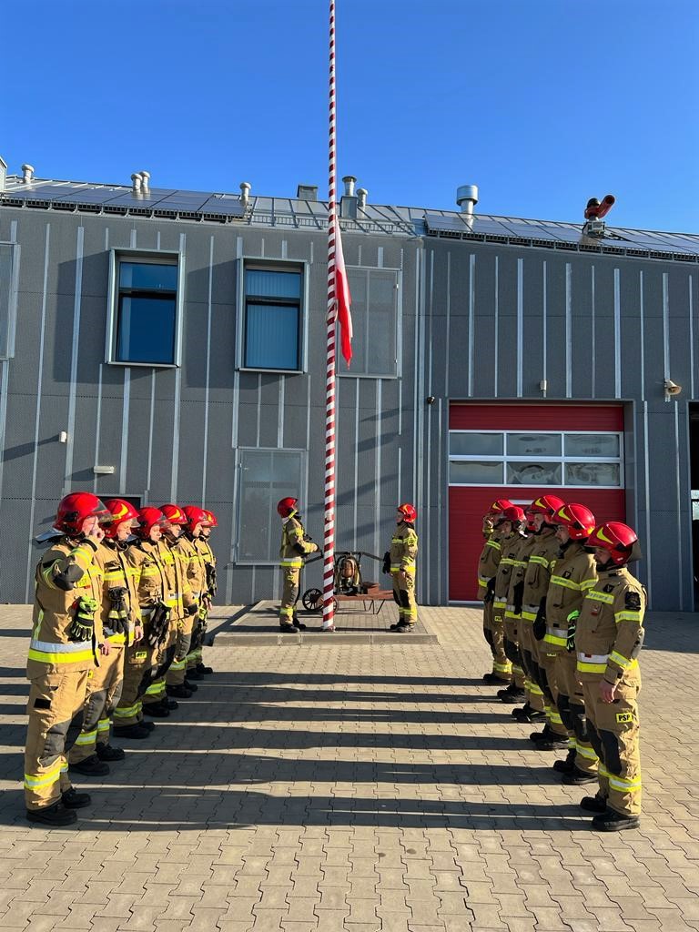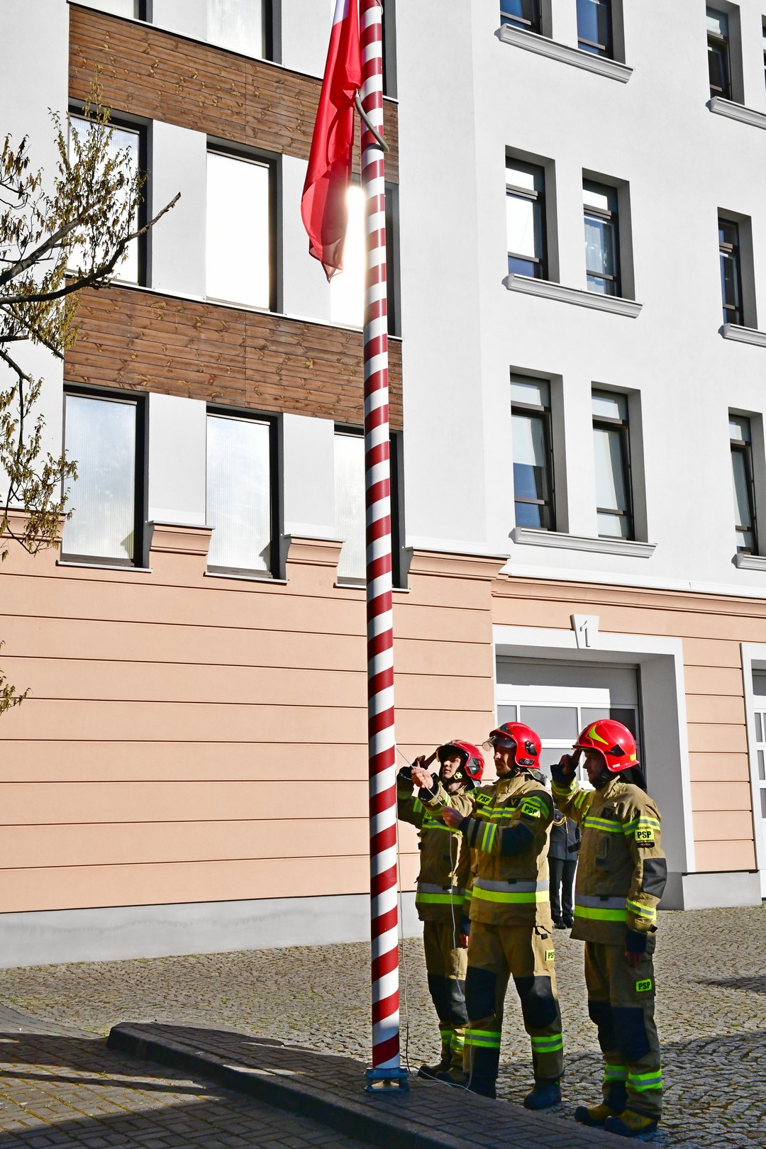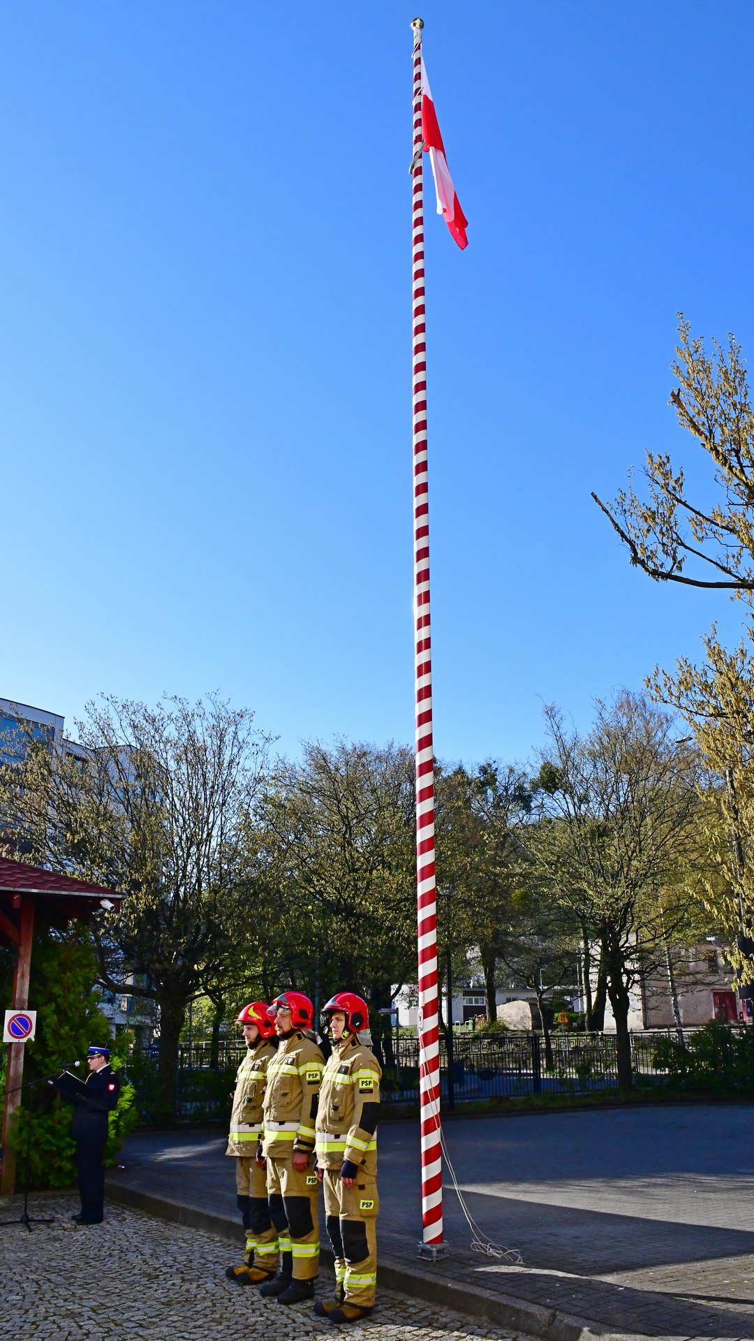 Uroczyste podniesienie flagi państwowej na maszt w jednostkach organizacyjnych PSP na terenie województwa pomorskiego.