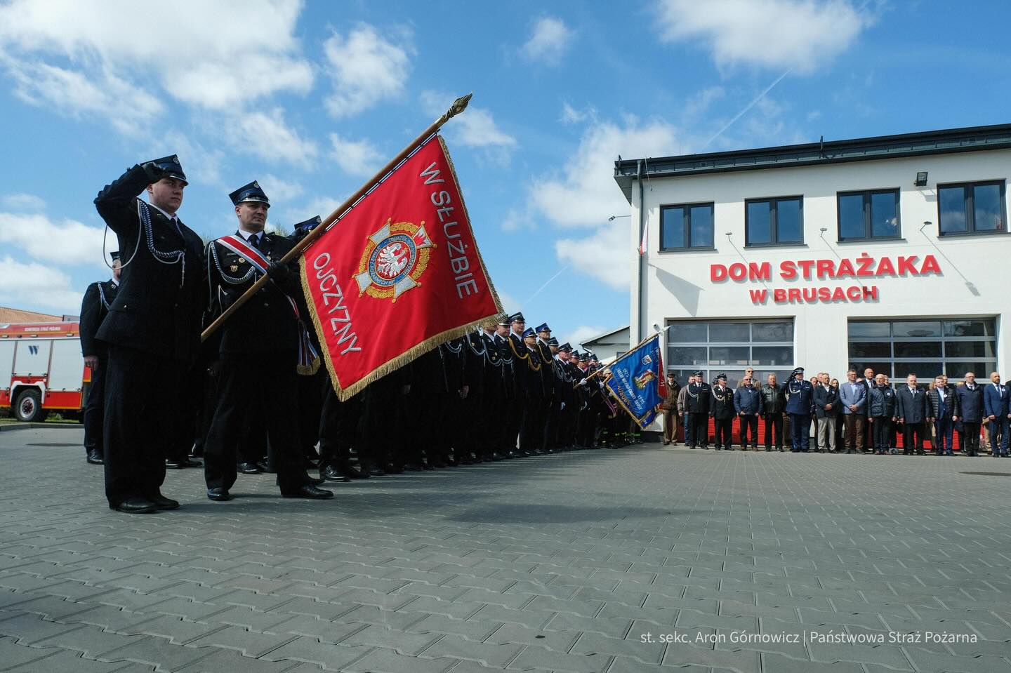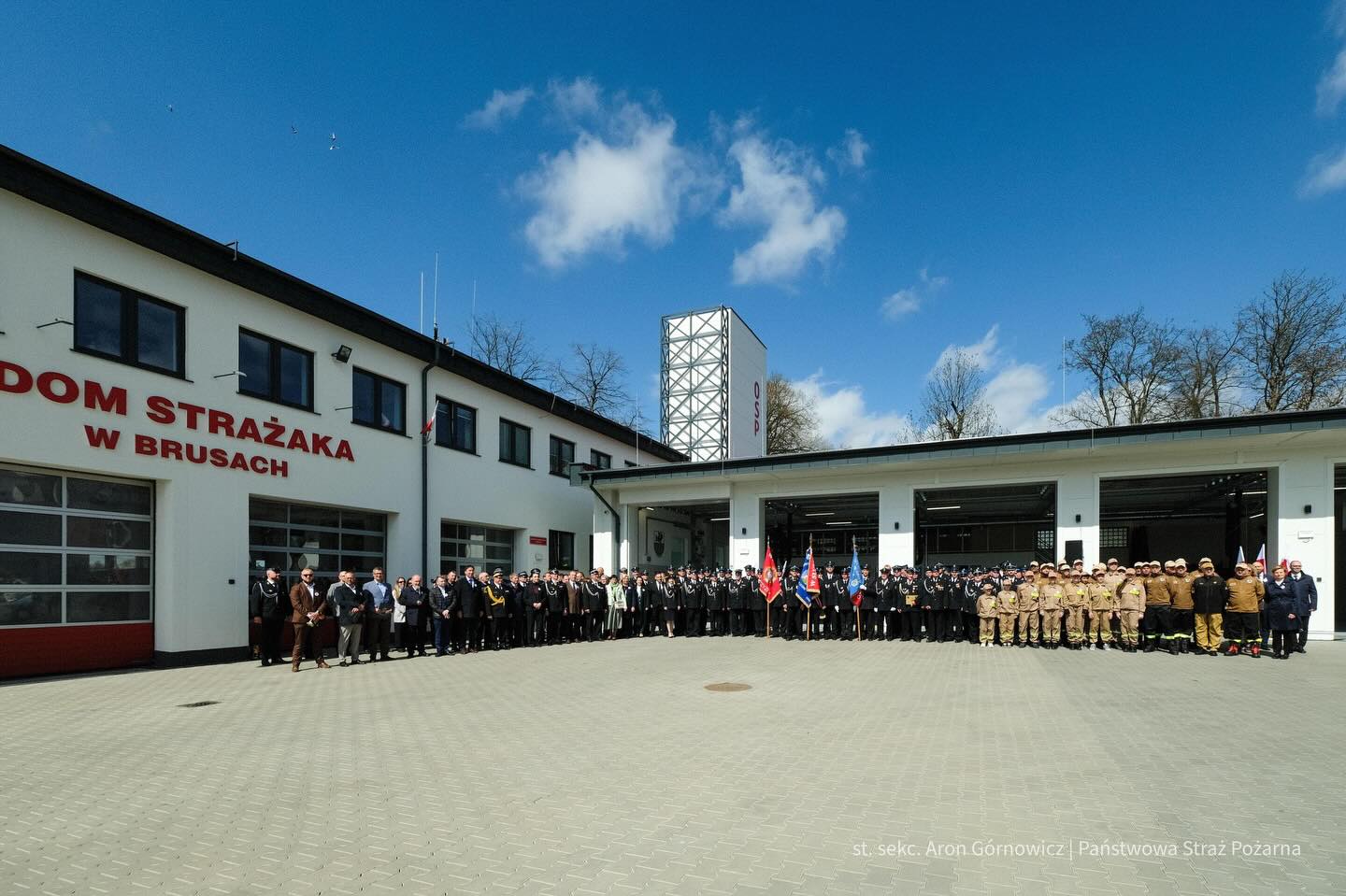W dniu 25 kwietnia 2026 roku Pomorski Komendant Wojewódzki PSP nadbryg. Jacek Niewęgłowski wraz ze swoim zastępcą st. bryg. Błażejem Chamier Cieminskim wzięli udział w uroczystym otwarciu rozbudowanej i zmodernizowanej remizy Ochotniczej Straży Pożarnej w Brusach. Dla naszej formacji to niezwykle ważny moment, będący zwieńczeniem wielu lat starań i trudnej walki o godne warunki służby dla lokalnych druhów.