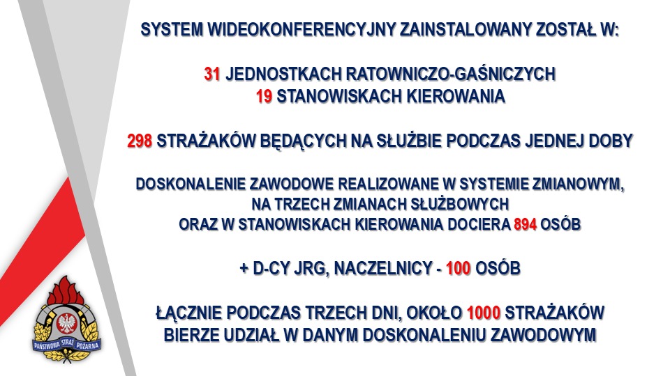 - łącznie podczas trzech dni, około 1000 strażaków weźmie udział w danym doskonaleniu zawodowym.