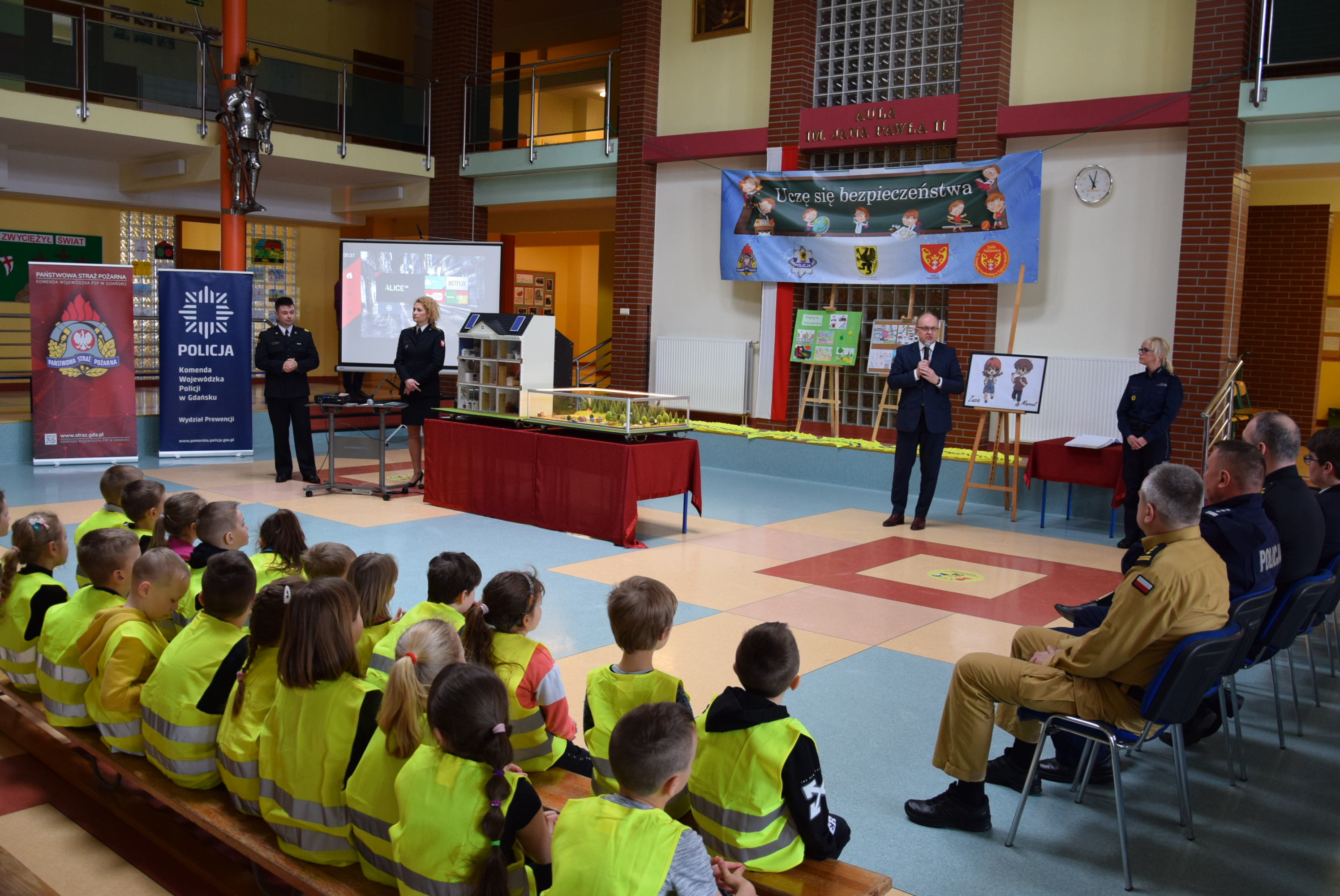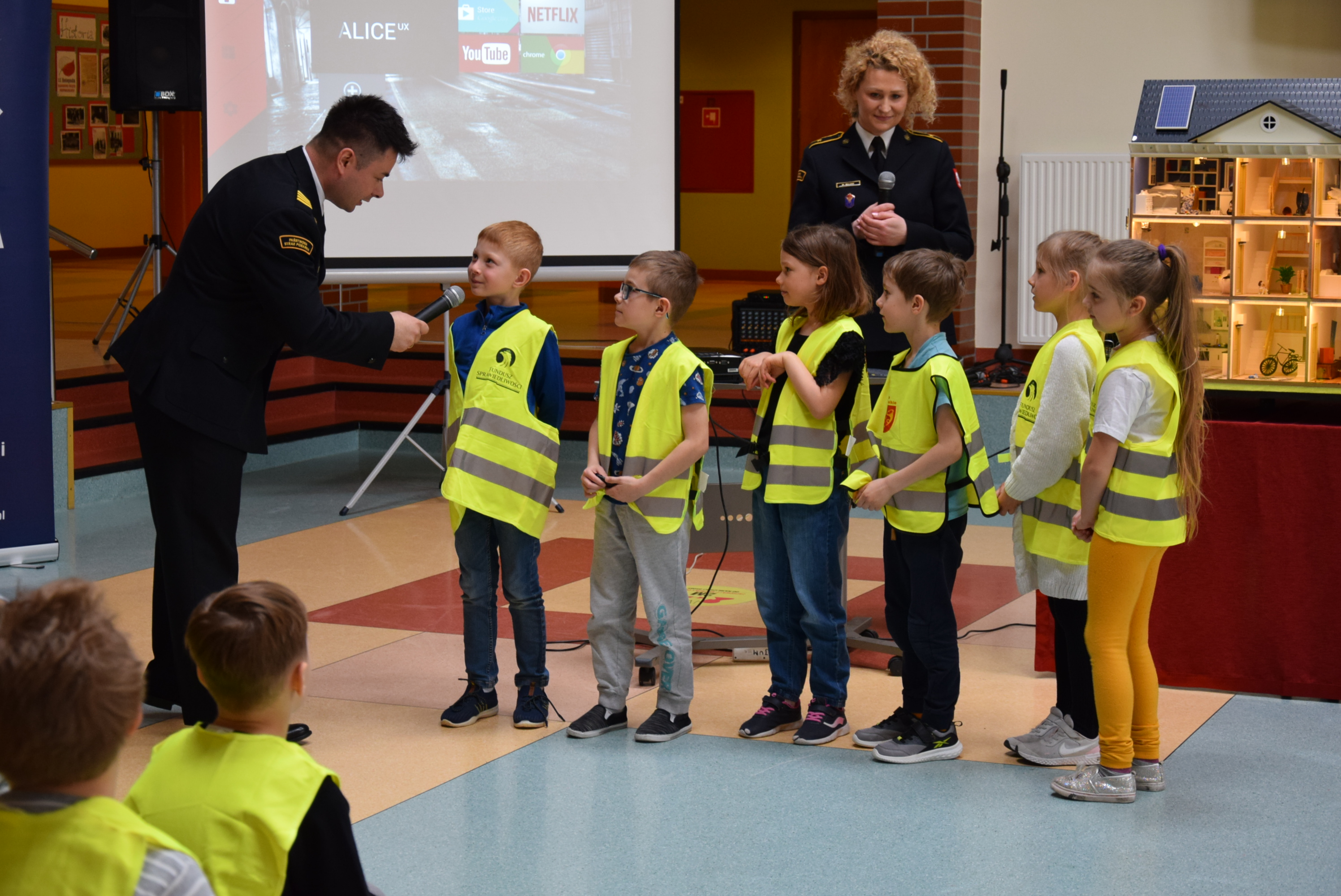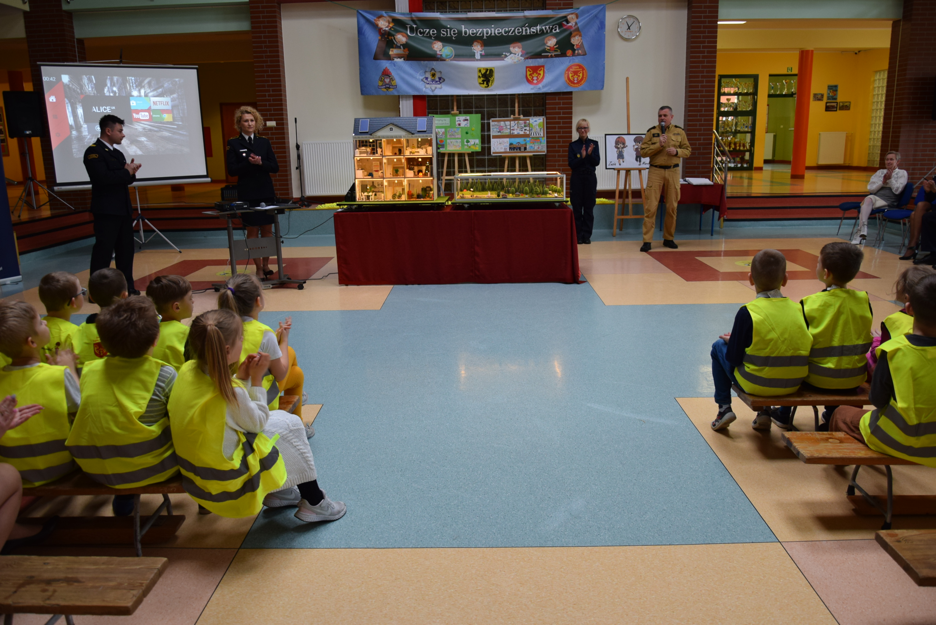 W ramach realizowanego policyjnego projektu "Uczę się bezpieczeństwa", dzieciom w klasach pierwszych przekazywane są treści dotyczące szeroko rozumianego bezpieczeństwa, w tym postępowanie podczas wystąpienia pożaru lub innego zagrożenia.