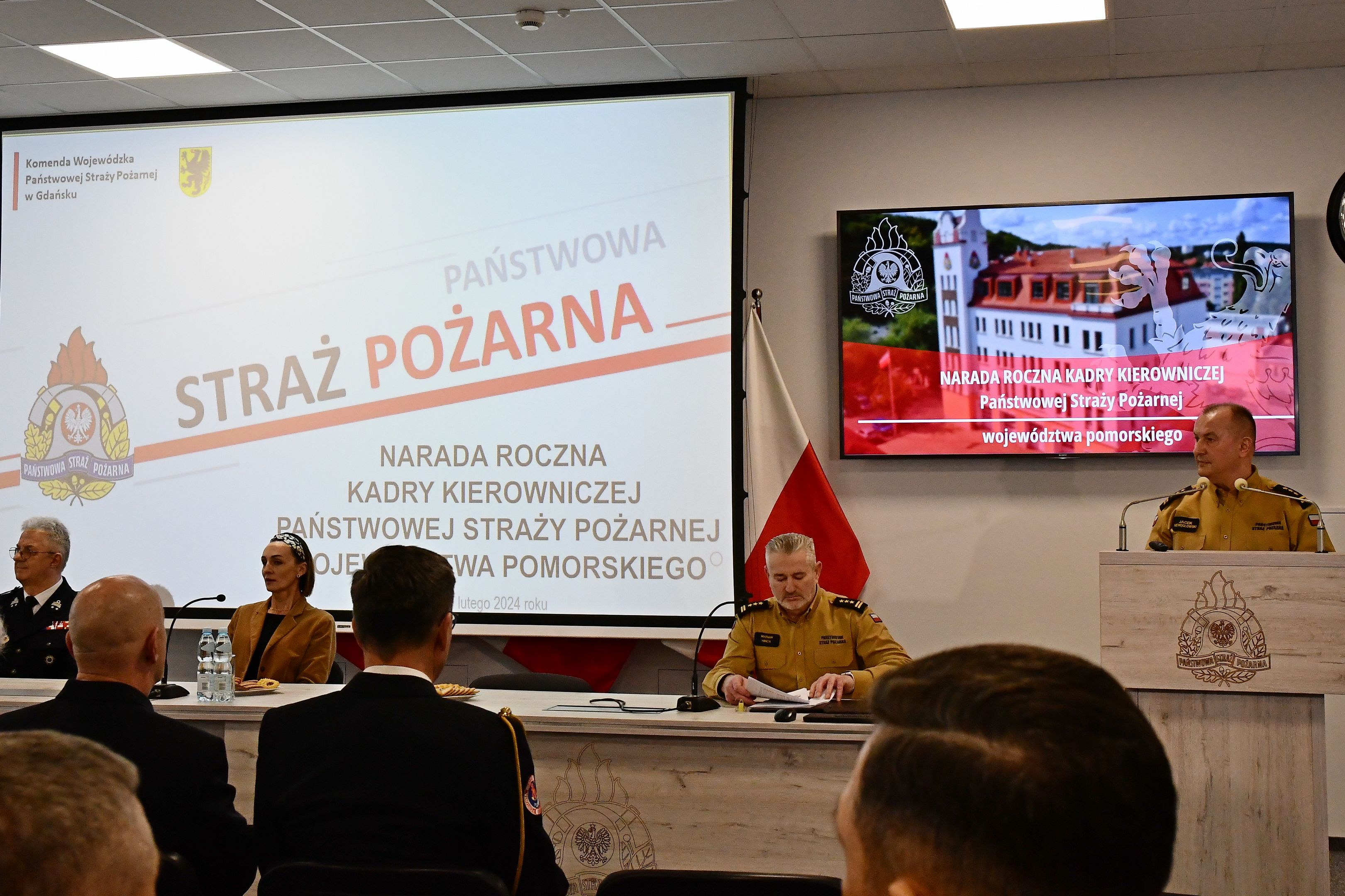 27 lutego 2024 roku w siedzibie Komendy Wojewódzkiej PSP w Gdańsku odbyła się narada kadry kierowniczej Państwowej Straży Pożarnej województwa pomorskiego. W odprawie uczestniczyli:
