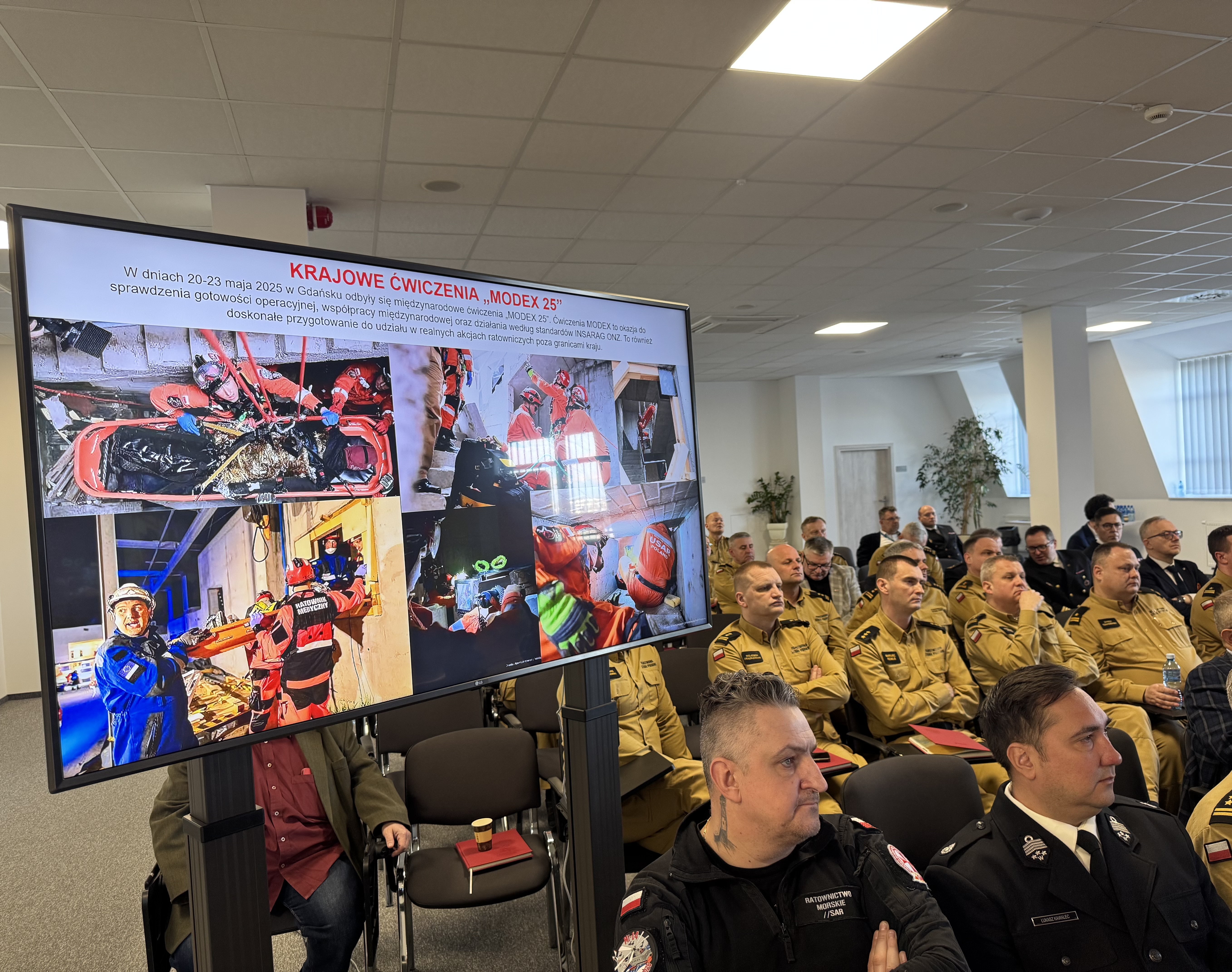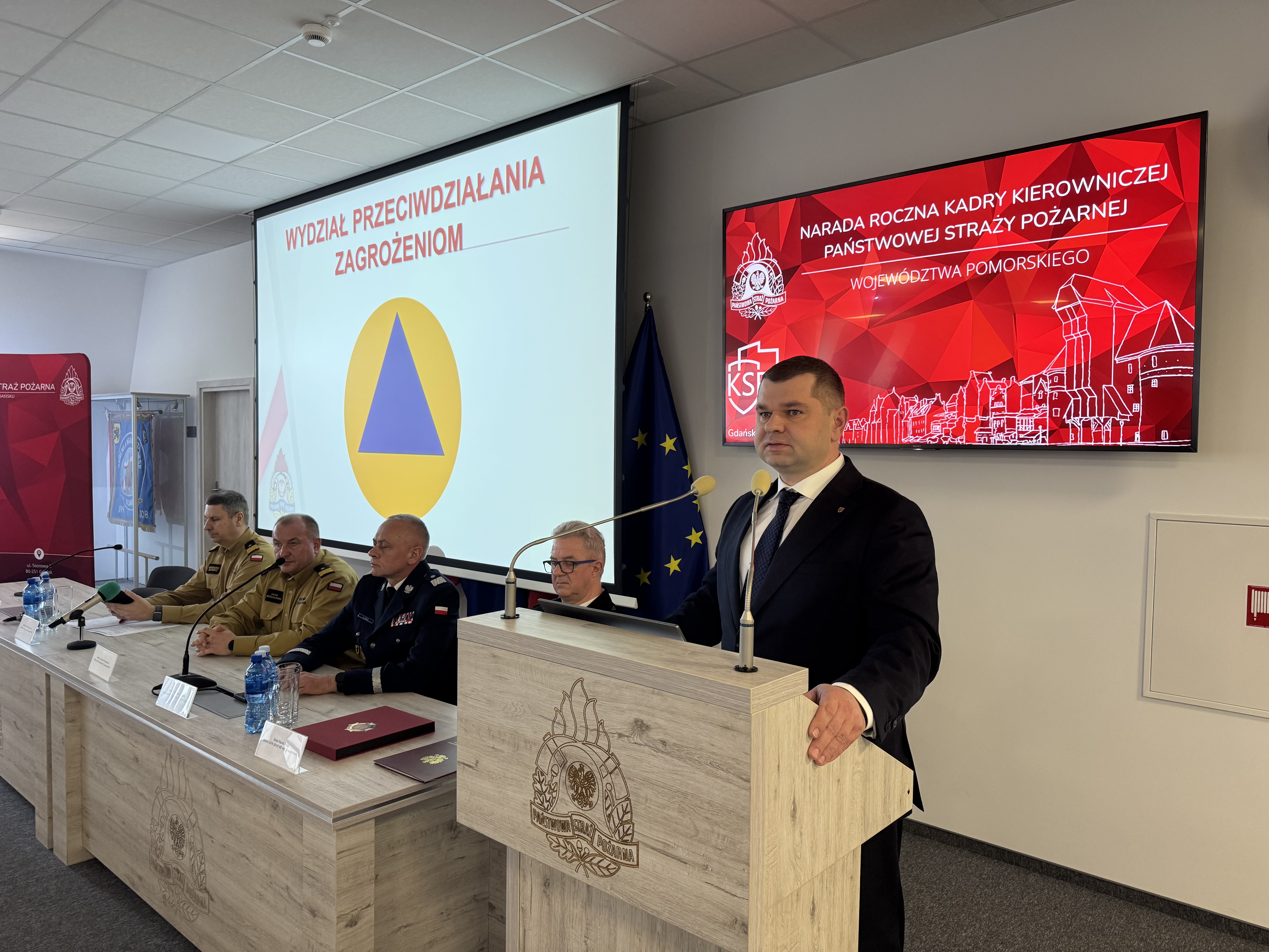 Z kolei zastępca pomorskiego komendanta wojewódzkiego PSP st. bryg. Błażej Chamier - Cieminski przedstawił działania realizowane przez Wydział Kwatermistrzowski, Wydział Techniczny oraz Wydział Informatyki i Łączności.