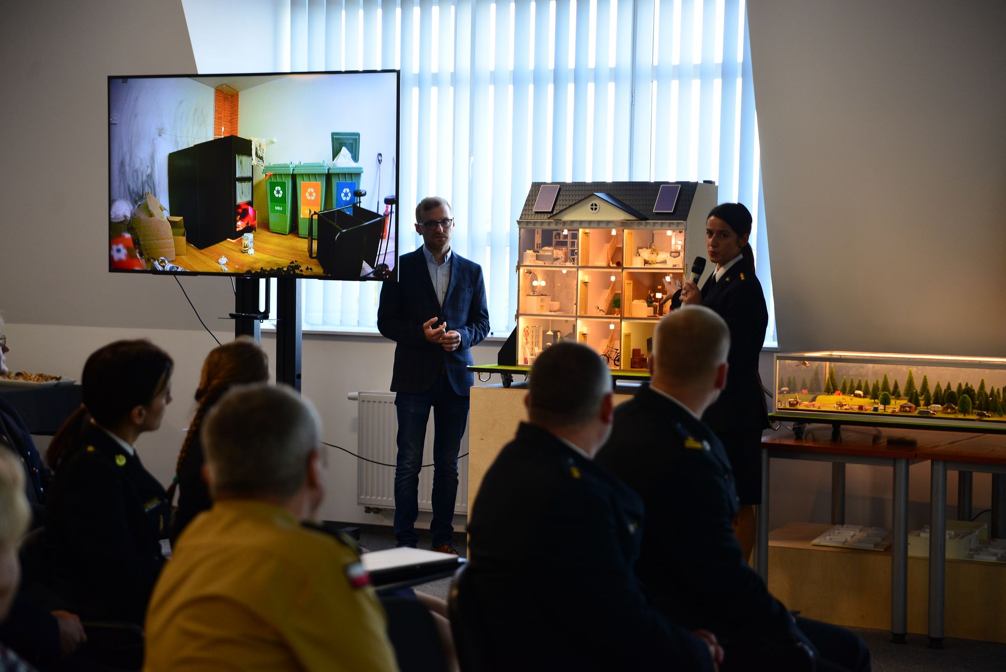 Kolejnym punktem narady był pokaz mobilnych symulatorów zagrożeń pożarowych. Urządzenia prezentują zagrożenia pożarowe oraz inne niebezpieczne sytuacje, które mogą mieć miejsce w domu jednorodzinnym. Sterowane przez komputery efekty świetlne, dźwiękowe oraz wydobywający się dym realnie oddają grozę sytuacji, pobudzając wyobraźnię widzów.