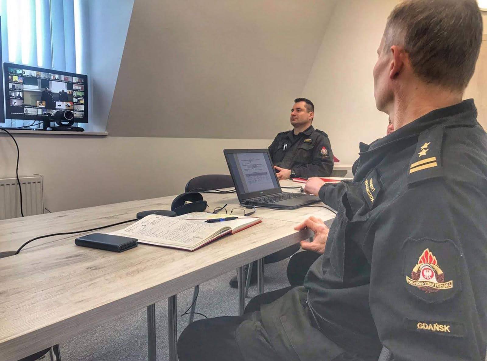 10 lutego 2021 roku w siedzibie Komendy Wojewódzkiej Państwowej Straży Pożarnej w Gdańsku za pomocą systemu wideokonferencji przperowadzono odprawę służbową dyżurnych operacyjnych stanowisk kierowania komendanta miejskiego/powiatowgo PSP województwa pomorskiego. Celem spotkania było przedstawienie oraz omówienie wybranych analiz działań ratowniczych prowadzonych podczas pandemii COVID-19.