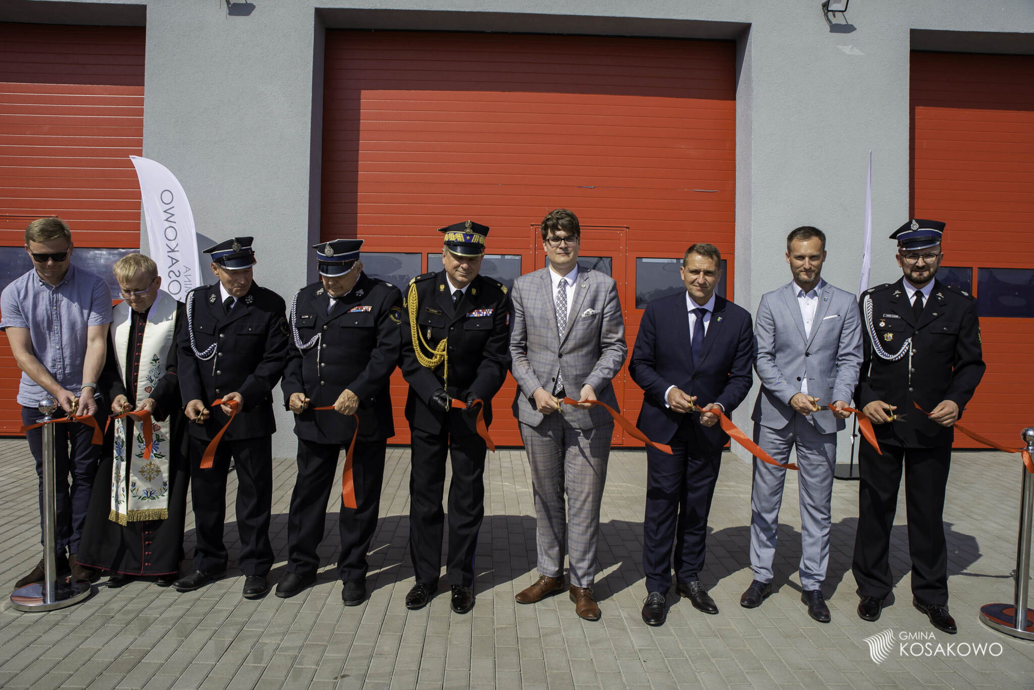 Ceremonię rozpoczęto od poświęcenia obiektu, następnie symbolicznie przekazano klucz do remizy na ręce prezesa Ochotniczej Straży Pożarnej w Kosakowie Krzysztofa Nadolskiego.