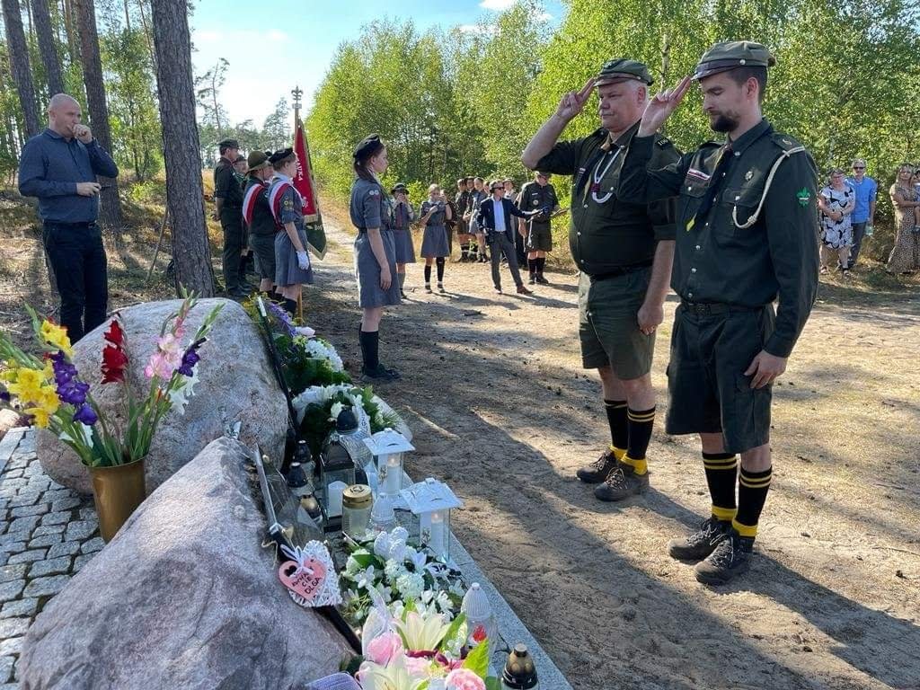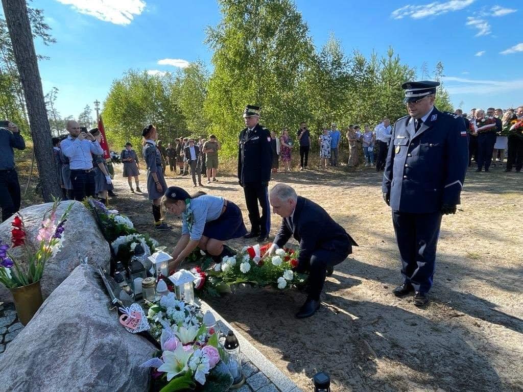Uczestnicy obchodów złożyli kwiaty pod tablicami poświęconymi pamięci Olgi i Asi - harcerek, które zginęły podczas nawałnicy.