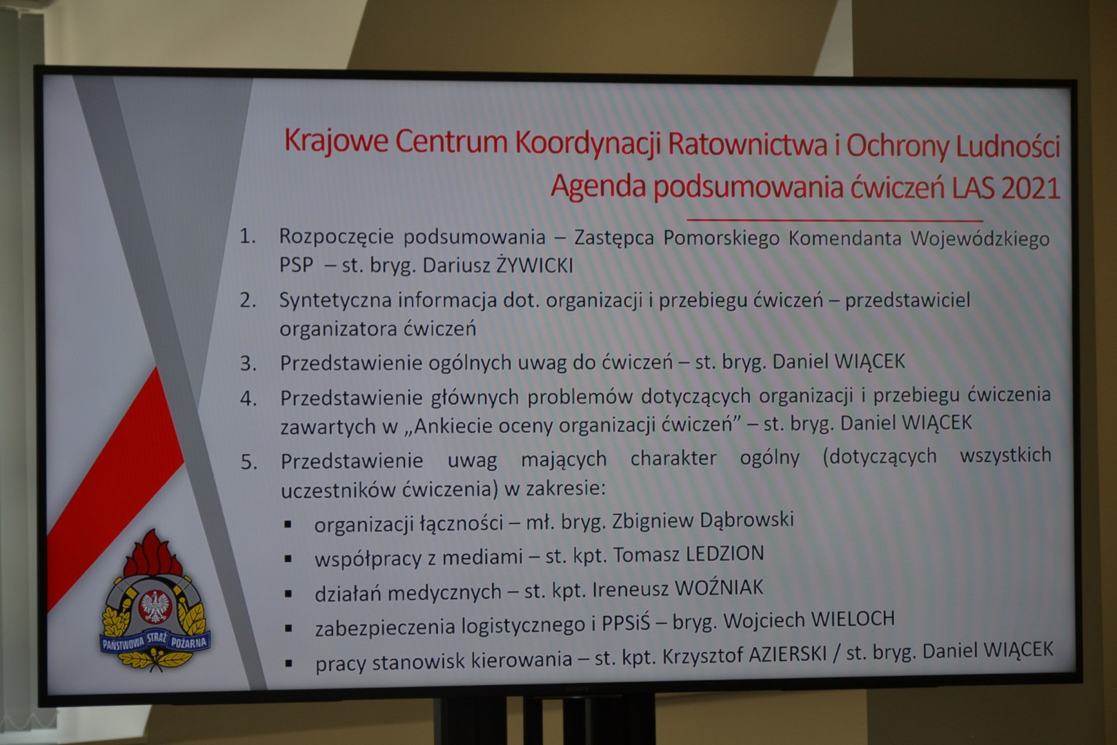 21 września 2021 roku w siedzibie Komendy Wojewódzkiej PSP w Gdańsku odbyła się odprawa kadry kierowniczej Państwowej Straży Pożarnej podsumowująca ćwiczenia ratownicze "LAS - 2021".