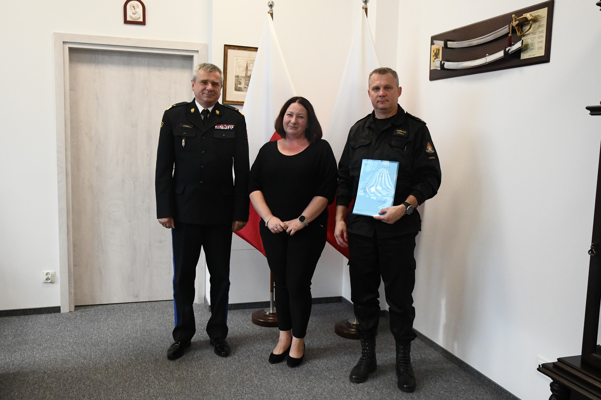 Podczas spotkania pomorski komendant wojewódzki PSP nadbryg. Piotr Socha oraz komendant miejski PSP w Gdańsku otrzymali podziękowania za sprawnie przeprowadzoną w dniu 14 września 2022 roku akcję gaśniczą na terenie Stoczni Gdańskiej.