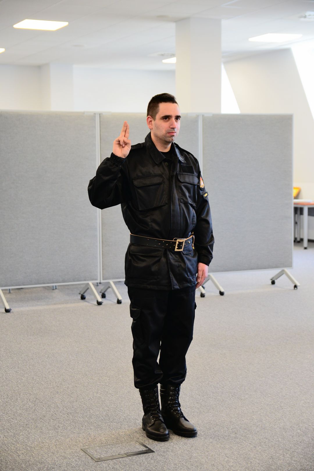 Kolejnym punktem uroczystości było ślubowanie nowo przyjętego funkcjonariusza PSP Wojciecha Ziemskiego.