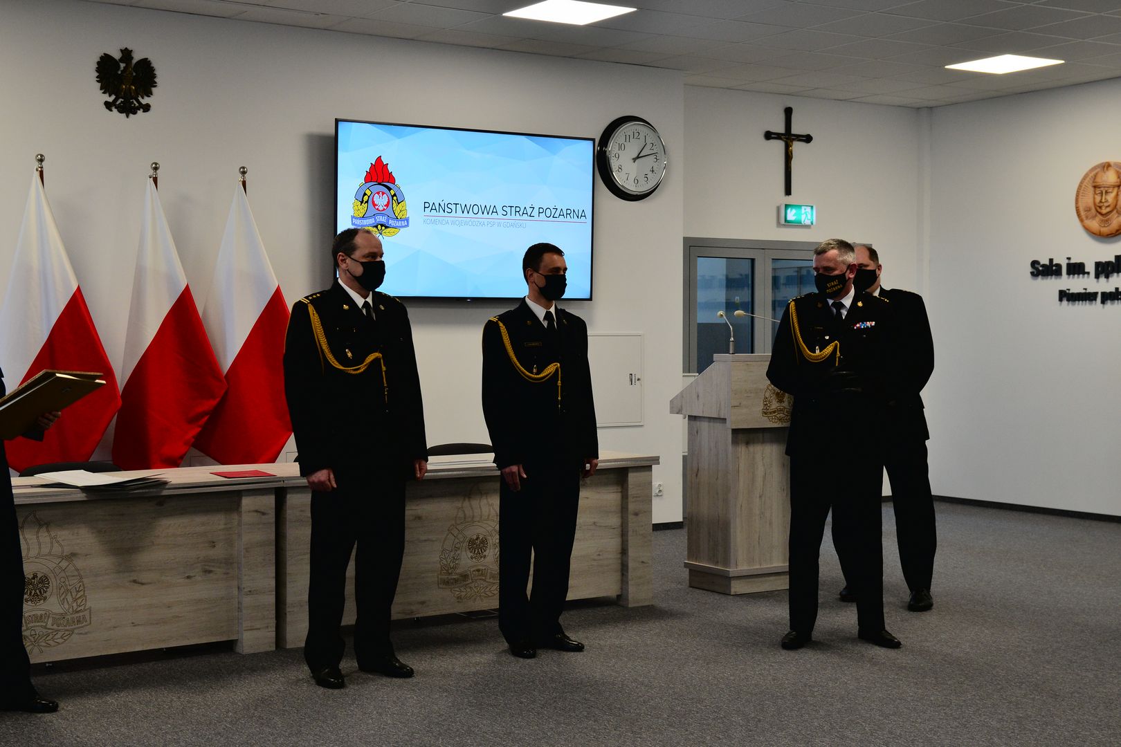 Pomorski komendant wojewódzki PSP st. bryg. Piotr Socha we własnym imieniu, ale także w imieniu swoich zastępców i kadry Komendy Wojewódzkiej PSP w Gdańsku podziękował funkcjonariuszom za wieloletnią służbę oraz zaangażowanie w wiele projektów, ćwiczeń oraz akcji ratowniczych. Wyraził uznanie dla niezwykłej wiedzy i kompetencji.