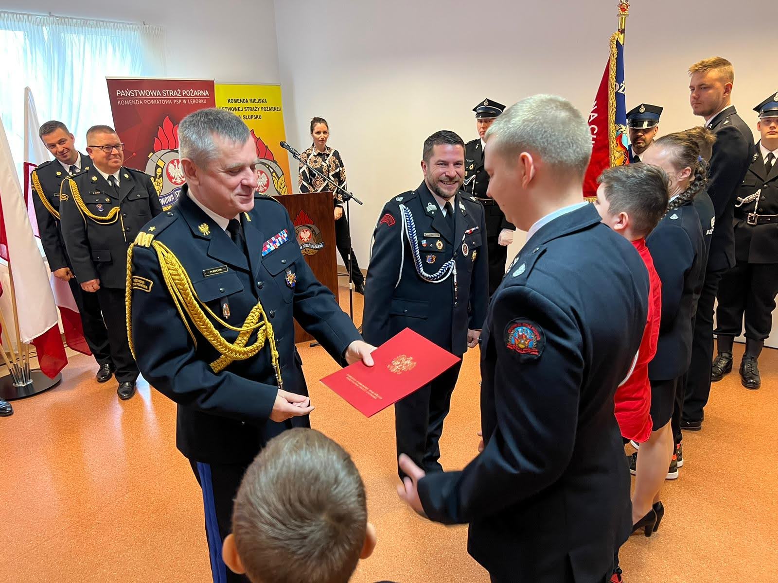 Podczas uroczystości dla Młodzieżowych Drużyn Pożarniczych ochotniczych straży pożarnych z powiatów: lęborskiego oraz słupskiego wręczono 37 promes na kwotę 168 141 zł.
