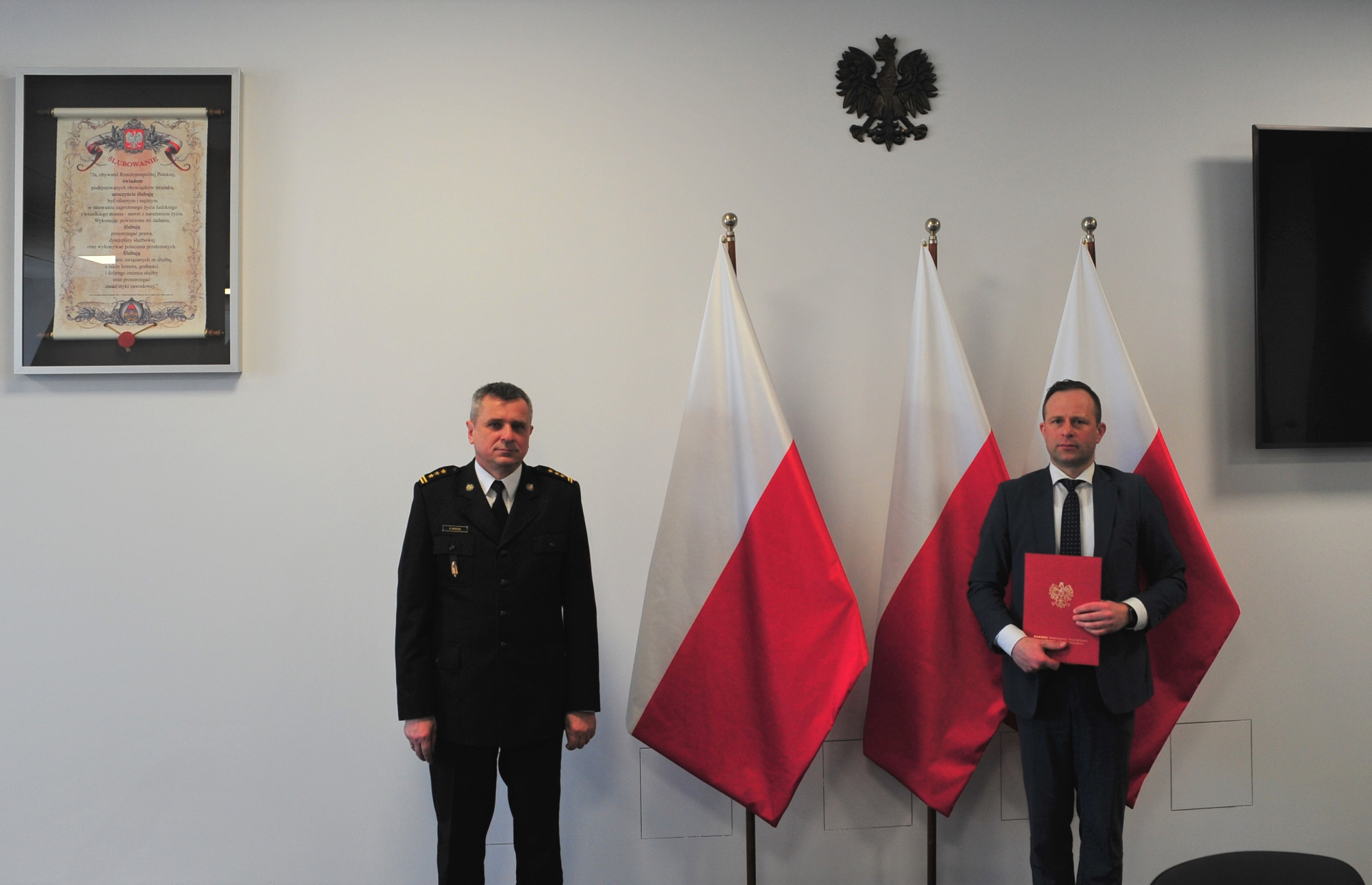 28 kwietnia 2021 roku w siedzibie Komendy Wojewódzkiej PSP w Gdańsku odbyło się spotkanie pomorskiego komendanta wojewódzkiego PSP st. bryg. Piotry Sochy z prezesem Wojewódzkiego Funduszu Ochrony Środowiska i Gospodarki Wodnej w Gdańsku Panem Marcinem Osowskim rozpoczynające realizację projektu "Słoneczne dachy w Państwowej Straży Pożarnej".