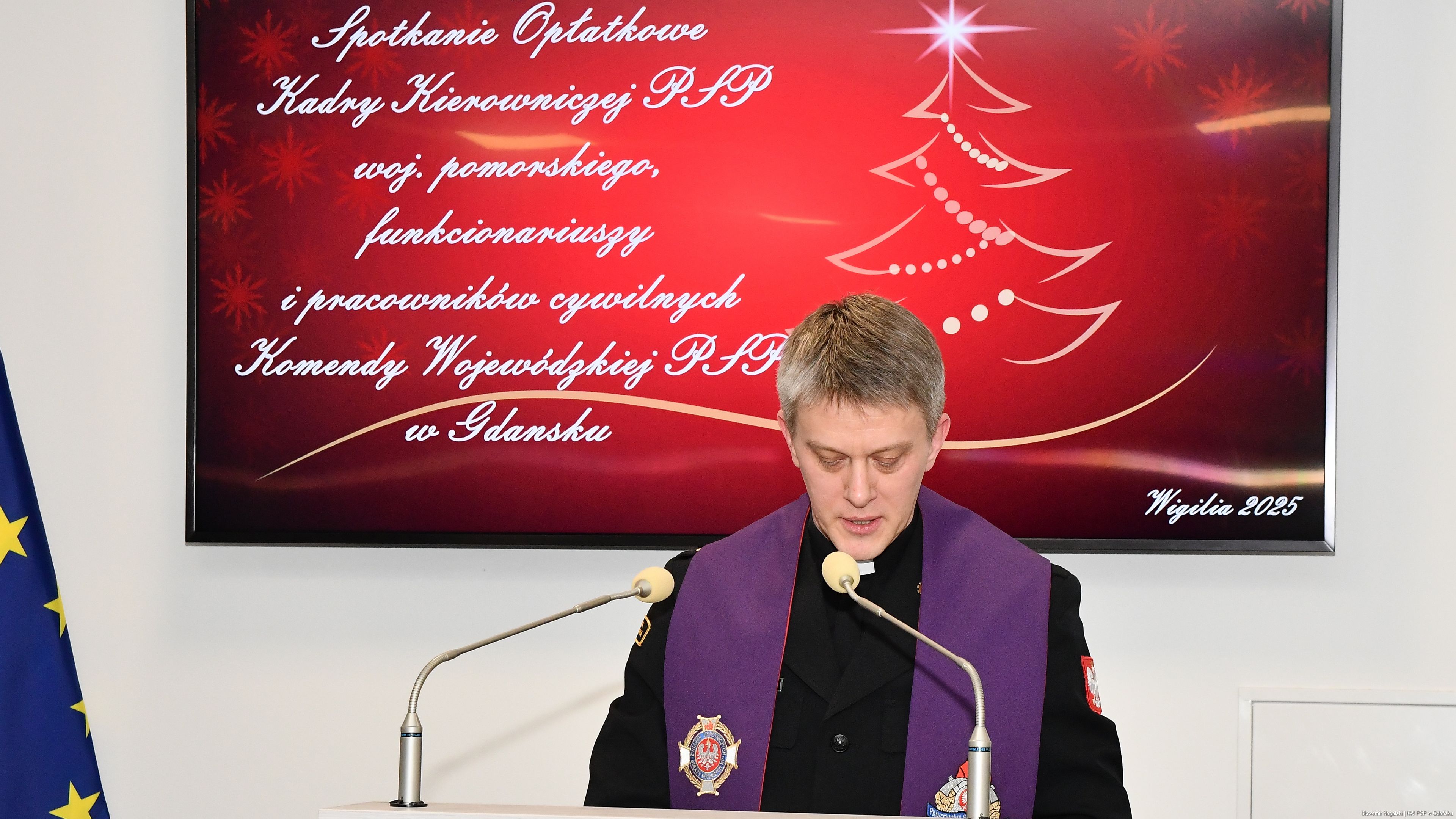 19 grudnia 2025 roku odbyło się spotkanie świąteczne funkcjonariuszy oraz pracowników cywilnych Komendy Wojewódzkiej Państwowej Straży Pożarnej w Gdańsku i komendantów miejskich oraz powiatowych z terenu województwa pomorskiego.