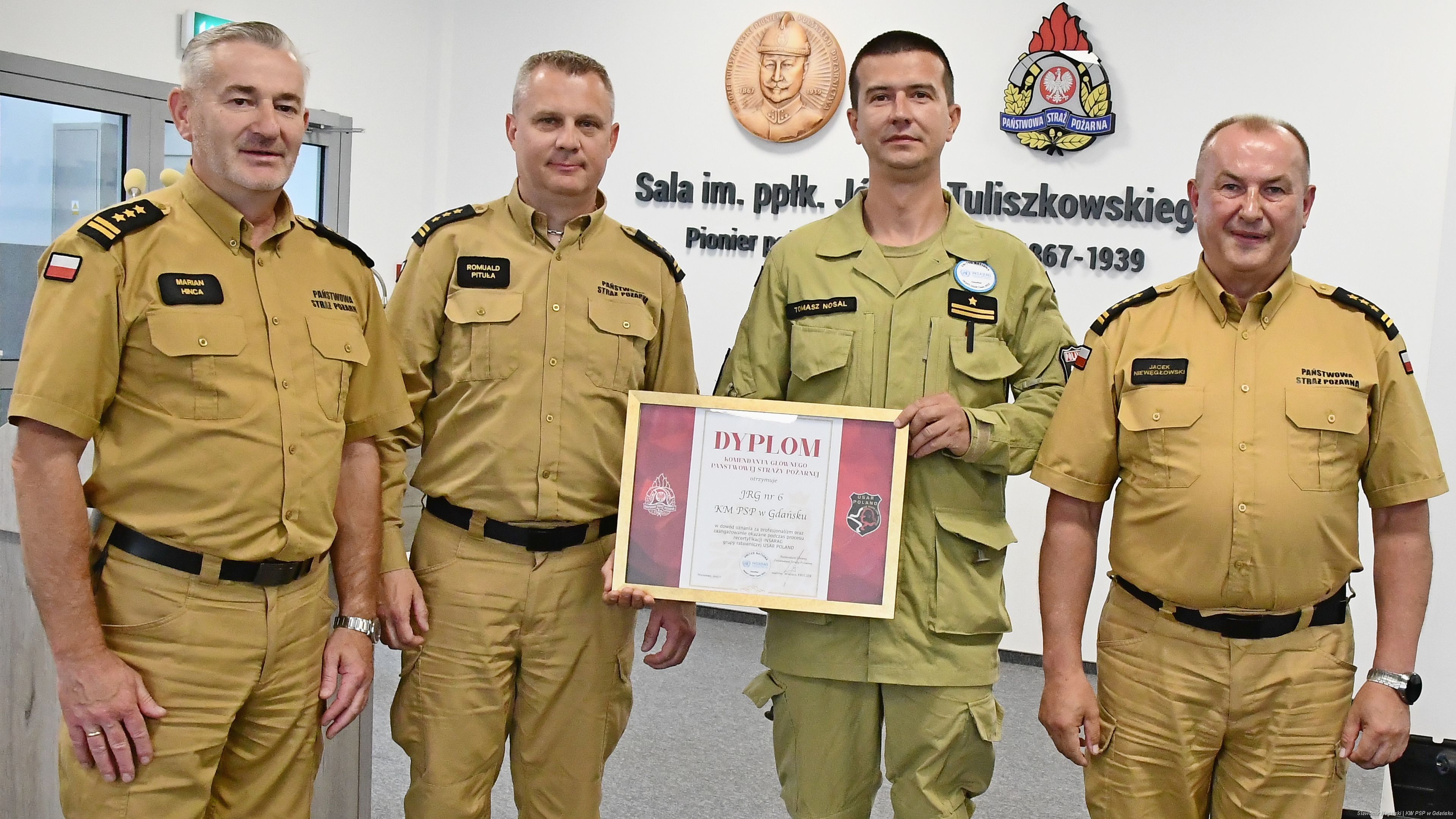 W dniu 9 lipca 2025r. w siedzibie Komendy Wojewódzkiej Państwowej Straży Pożarnej w Gdańsku odbyło się uroczyste spotkanie funkcjonariuszy z województwa pomorskiego, w tym członków Specjalistycznej Grupy Poszukiwawczo-Ratowniczej w Gdańsku, z pomorskim komendantem wojewódzkim PSP st. bryg. Jackiem Niewęgłowskim oraz zastępcą pomorskiego komendanta wojewódzkiego PSP st. bryg. Marianem Hincą.
