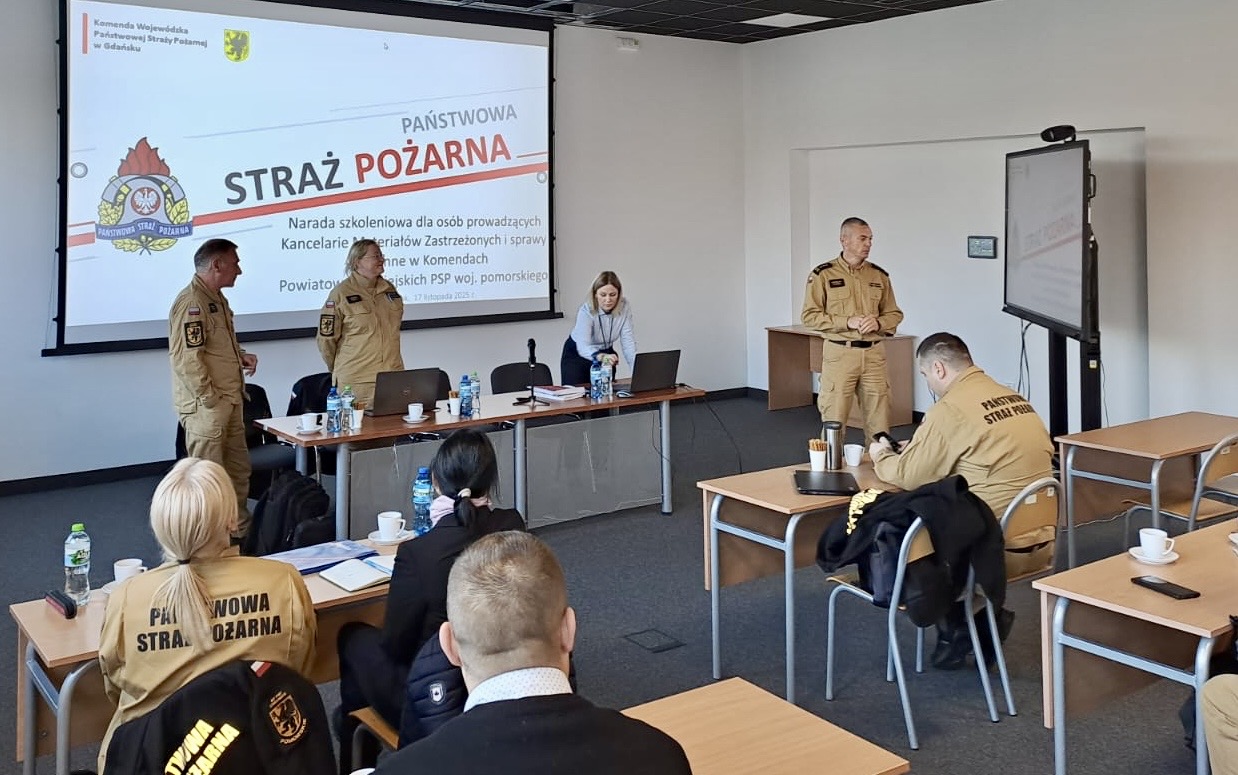 W dniu 17 listopada 2025 r. Ośrodek Szkolenia Komendy Wojewódzkiej PSP w Gdańsku z siedzibą w Słupsku, przeprowadził szkolenie doskonalące z zakresu działania Kancelarii Materiałów Niejawnych i spraw obronnych. W ramach szkolenia zrealizowano następujące zagadnienia: