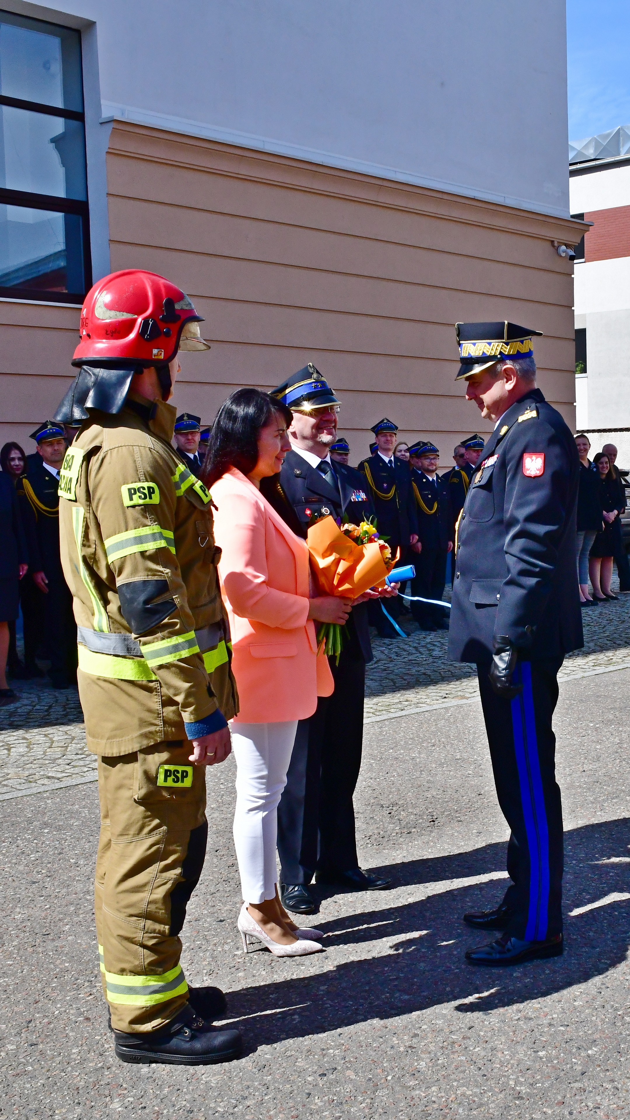 Podczas uroczystości funkcjonariusze Państwowej Straży Pożarnej oraz pracownicy korpusu służby cywilnej KW PSP złożyli gratulacje.