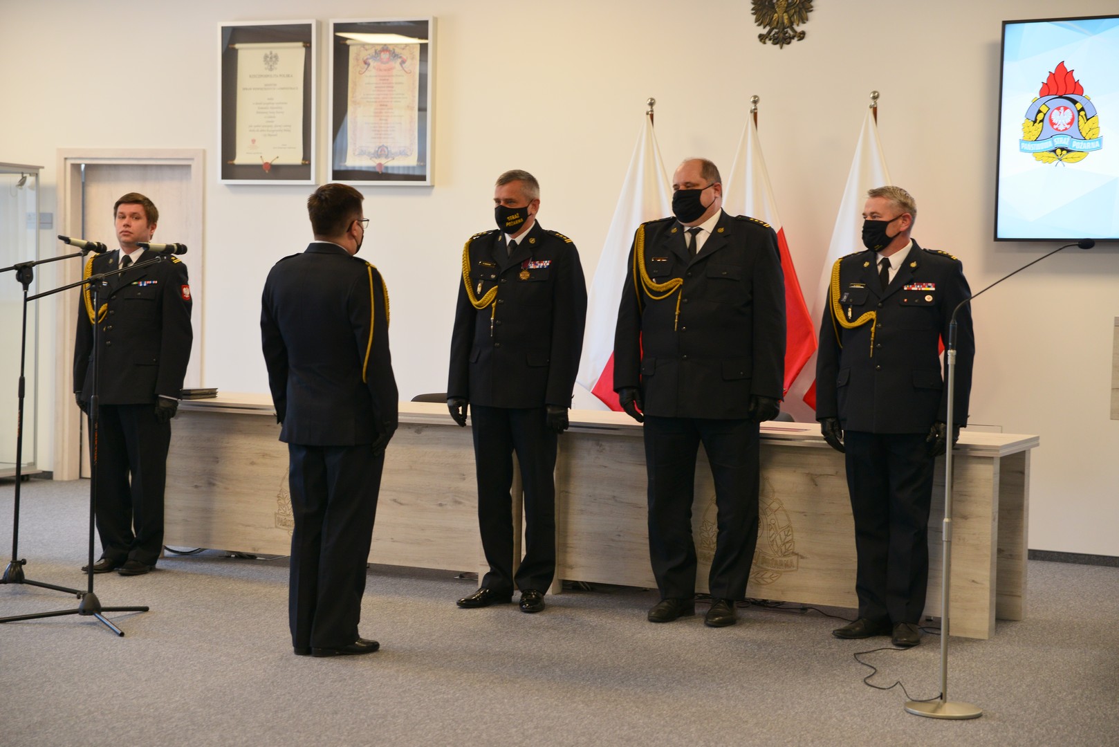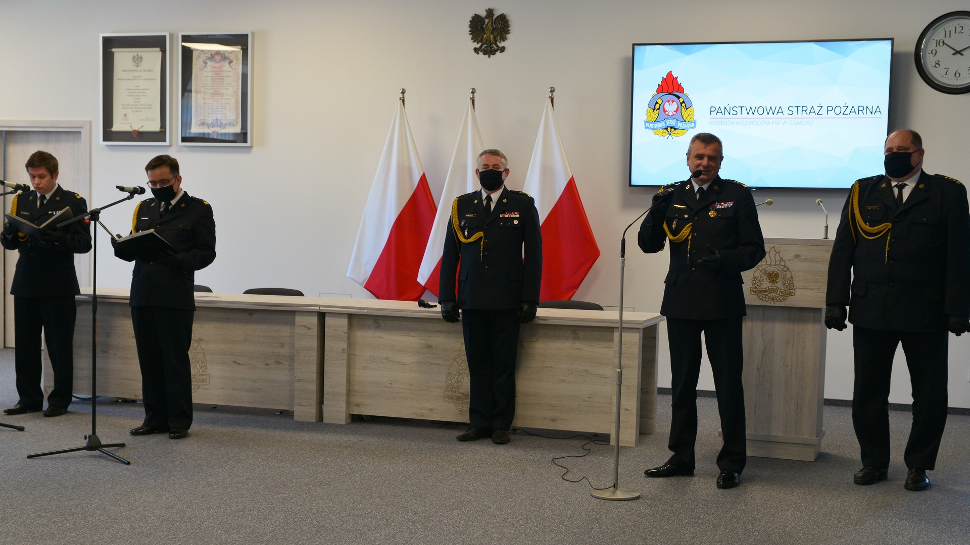 Podczas uroczystości pomorski komendant wojewódzki PSP st. bryg. Piotr Socha podziękował strażakom, pracownikom cywilnym komendy za służbę oraz pogratulował wzorowej postawy podczas wypełniania obowiązków służbowych.