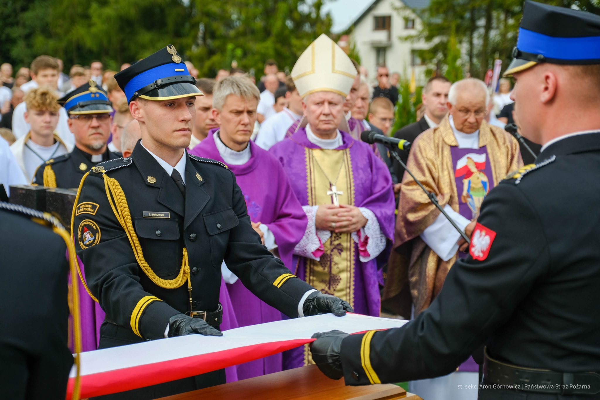 W uroczystości pogrzebowej uczestniczyła rodzina i przyjaciele, druhny i druhowie Ochotniczych Straży Pożarnych, a także funkcjonariusze i pracownicy cywilni Państwowej Straży Pożarnej na czele z komendantem głównym PSP nadbyg. Wojciechem Kruczkiem oraz jeden z osobiście kierujących działaniami ratowniczymi podczas pożaru zakładu produkcyjnego w Kawlach, zastępca komendanta głównego PSP nadbryg. dr inż. Grzegorz Szyszko, przedstawiciele władz państwowych, samorządowcy, tłumnie przybyli też mieszkańcy Sierakowic.