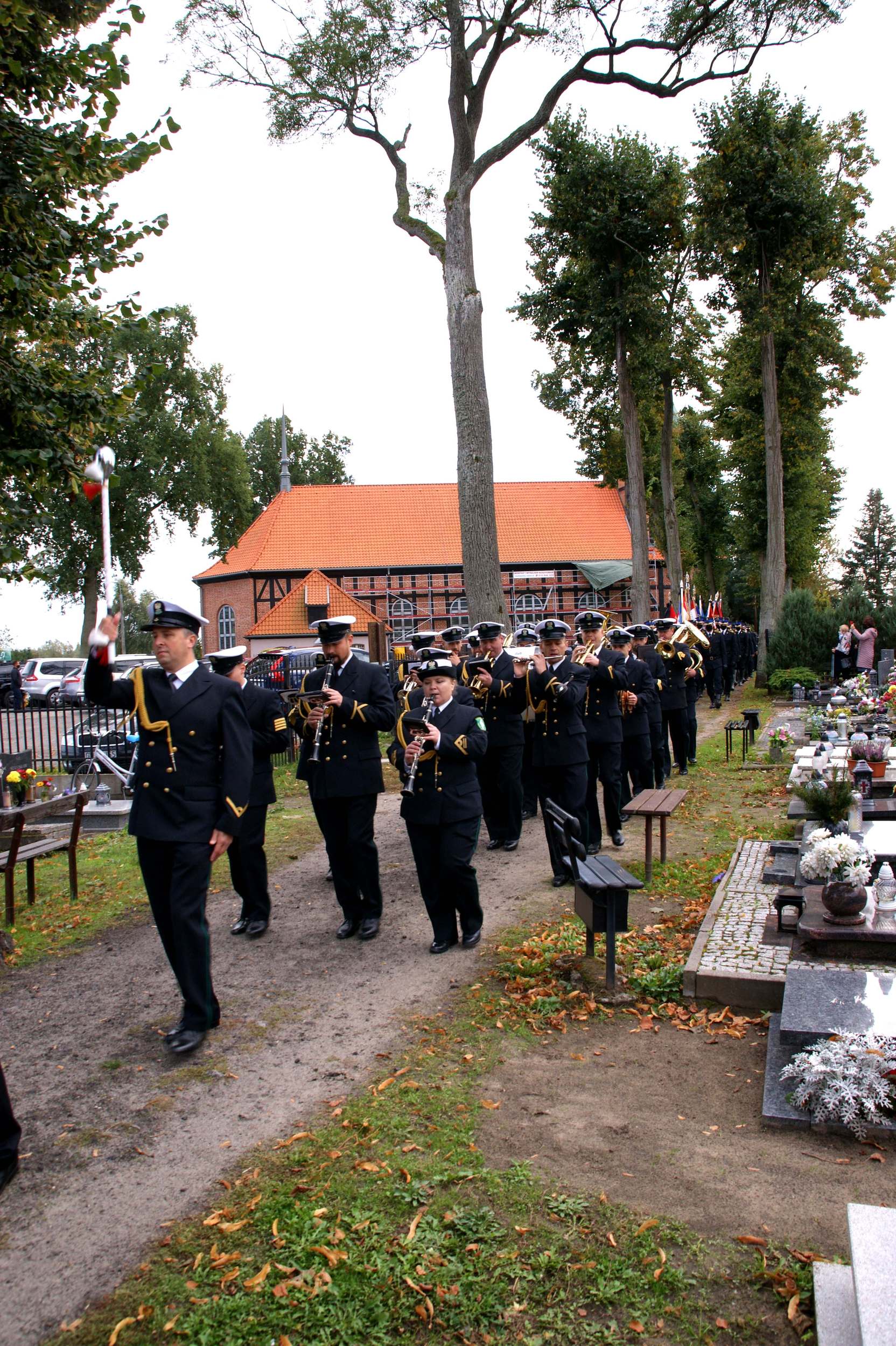 Po mszy świętej kondukt żałobny z trumną okrytą flagą państwową przemaszerował na cmentarz. Odznaczenia, czapkę zmarłego oraz flagę państwową Komendant Powiatowy Państwowej Straży Pożarnej w Nowym Dworze Gdańskim przekazał wdowie składając kondolencje pogrążonej w bólu i żalu rodzinie. Przy dźwiękach syren trumna ze zmarłym została opuszczona do grobu.