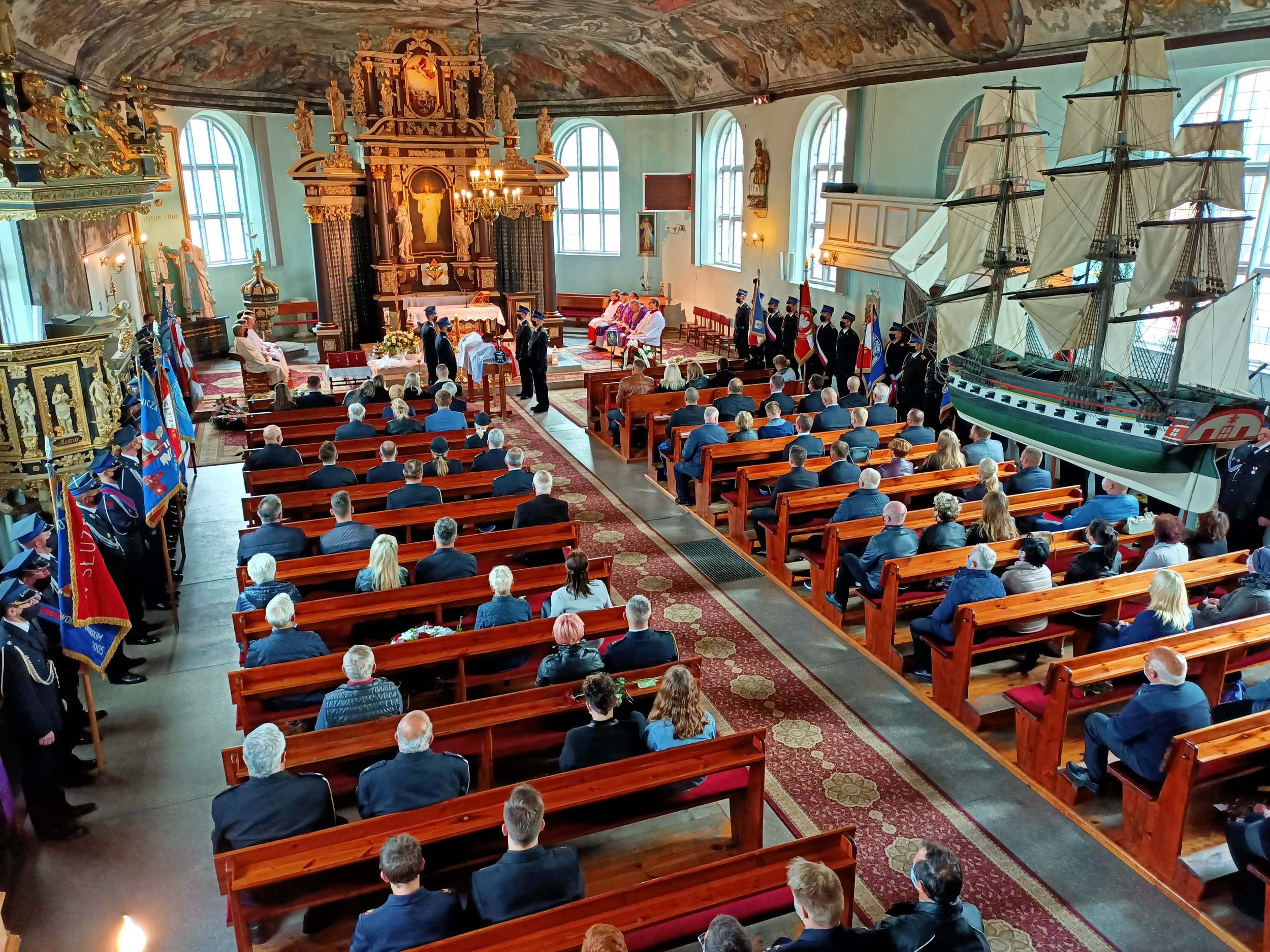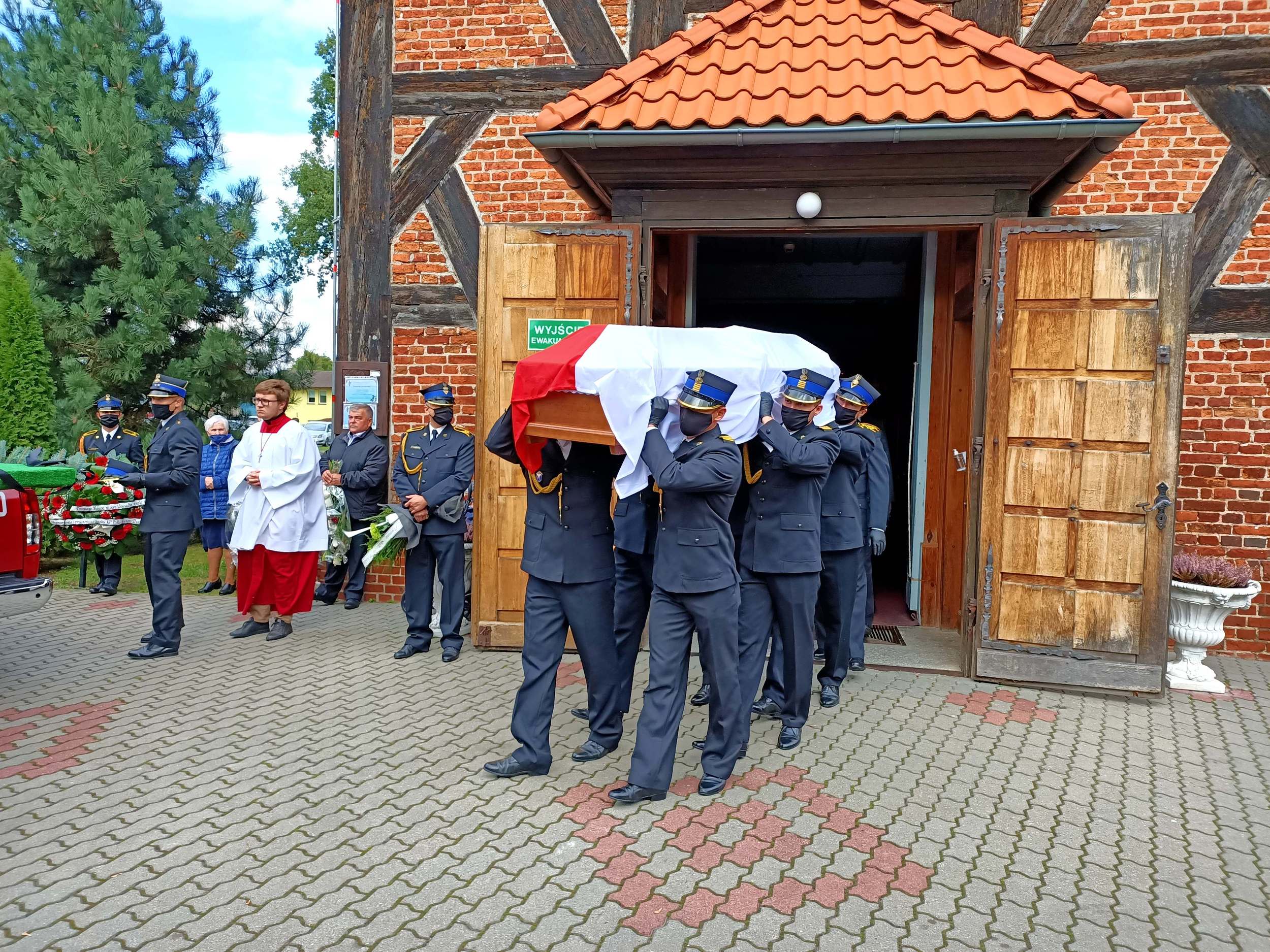 Uroczystość pogrzebowa rozpoczęła się w Kościele Rzymskokatolickim pw. Najświętszego Serca Pana Jezusa w Stegnie, mszą świętą koncelebrowaną przez: ks. dr Arkadiusza Dekańskiego - kapelana powiatowego strażaków KP PSP w Nowym Dwórze Gdańskim, ks. kan. mgr Dariusza Juszczaka - kapelana strażaków diecezji elbląskiej, ks. st. str. Jarosława Lisicę - kapelana strażaków województwa pomorskiego.