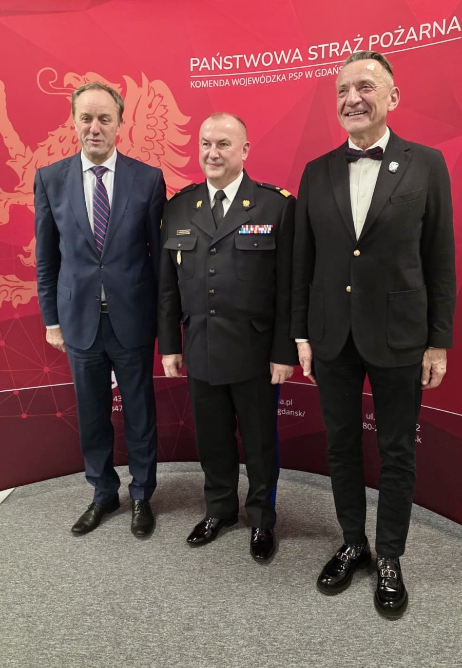 W dniu 5 grudnia 2025 roku mieliśmy przyjemność gościć w murach Komendy Wojewódzkiej PSP w Gdańsku Marszałka Województwa Pomorskiego Mieczysława Struka i Wicemarszałka Województwa Pomorskiego Leszka Bonnę oraz Dyrektora Departamentu Krzysztofa Pałkowskiego. Spotkanie przebiegło w bardzo dobrej atmosferze i było okazją do omówienia bieżącej współpracy pomiędzy Samorządem Województwa a Państwową Strażą Pożarną.