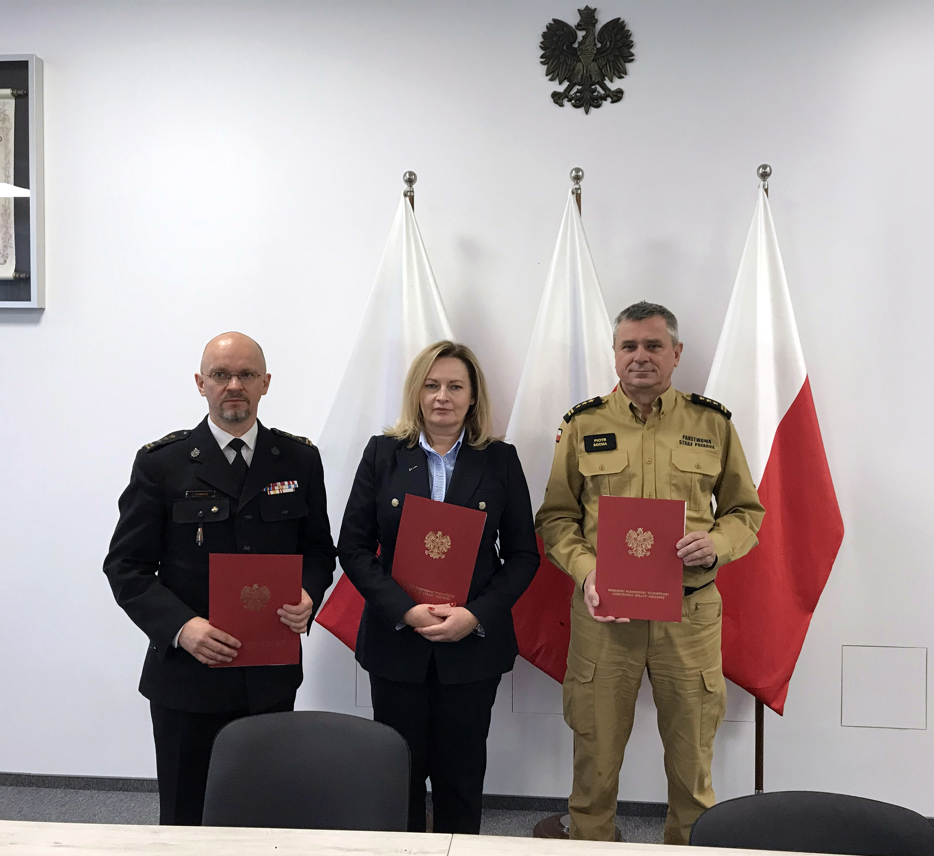 Kolejnym punktem spotkania było podpisanie porozumienia dotyczącego wspracia finansowego Komendy Powiatowej PSP w Kościerzynie z budżetu starostwa powiatowego w Kościerzynie. Środki finansowe przeznaczone zostaną na zakup wyposażenia ochrony osobistej oraz sprzętu ratownictwa medycznego wykorzystywanego na terenie powiatu. Dodatkowo starostwo powiatowe w Kościerzynie wsparło Komendę Powiatową PSP w Kościerzynie w zakupie sorbemtów oraz środka pianotwórczego.