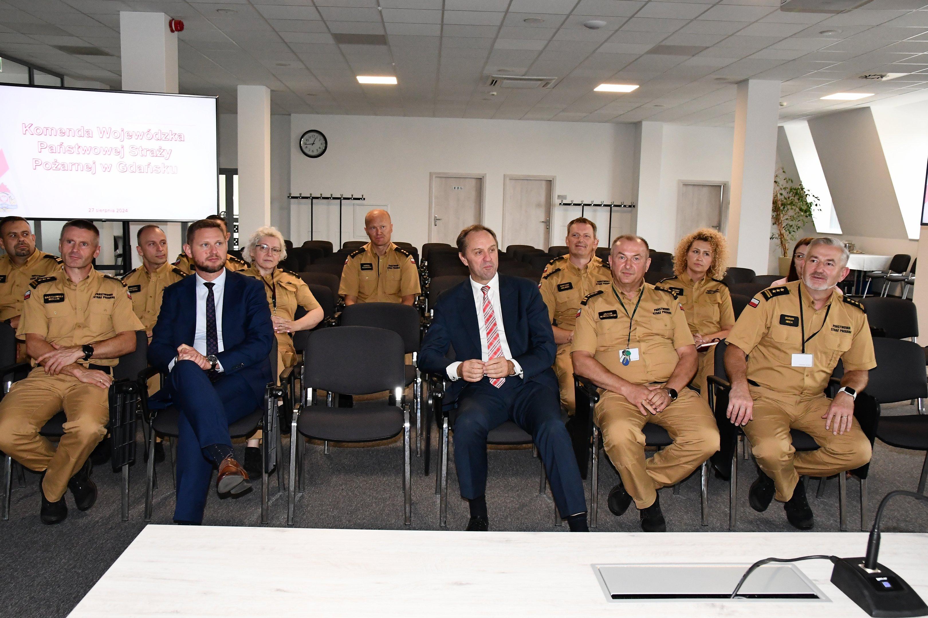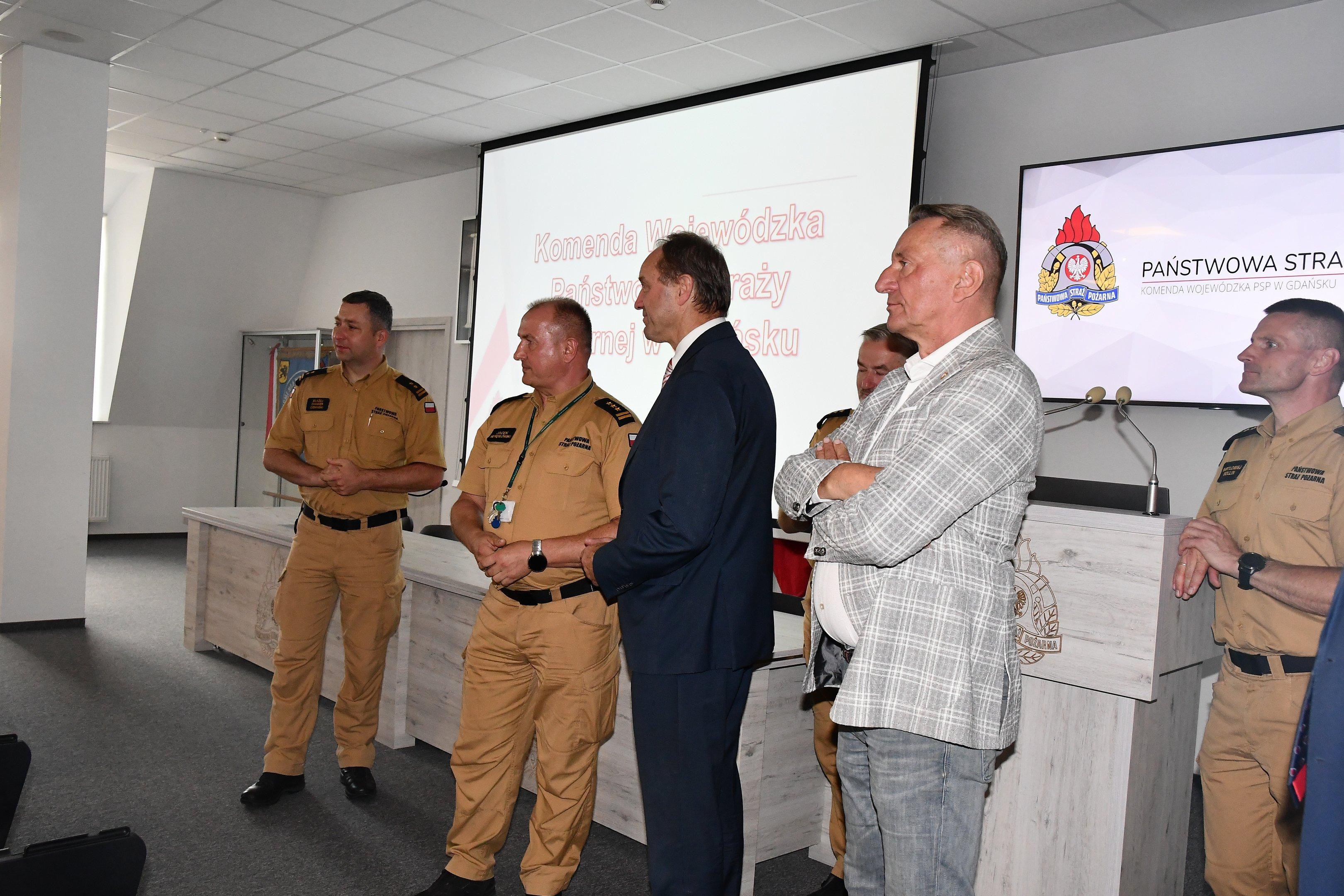 W dniu 28 sierpnia Pomorski Komendant Wojewódzki st. bryg. Jacek Niewęgłowski zaprosił do Komendy Wojewódzkiej PSP w Gdańsku Pana Marszałka woj. pomorskiego Mieczysława Struka wraz z Wicemarszałkiem Leszkiem Bonna oraz Dyrektora Departamentu Środowiska i Rolnictwa w Urzędzie Marszałkowskim Krzysztofa Pałkowskiego.