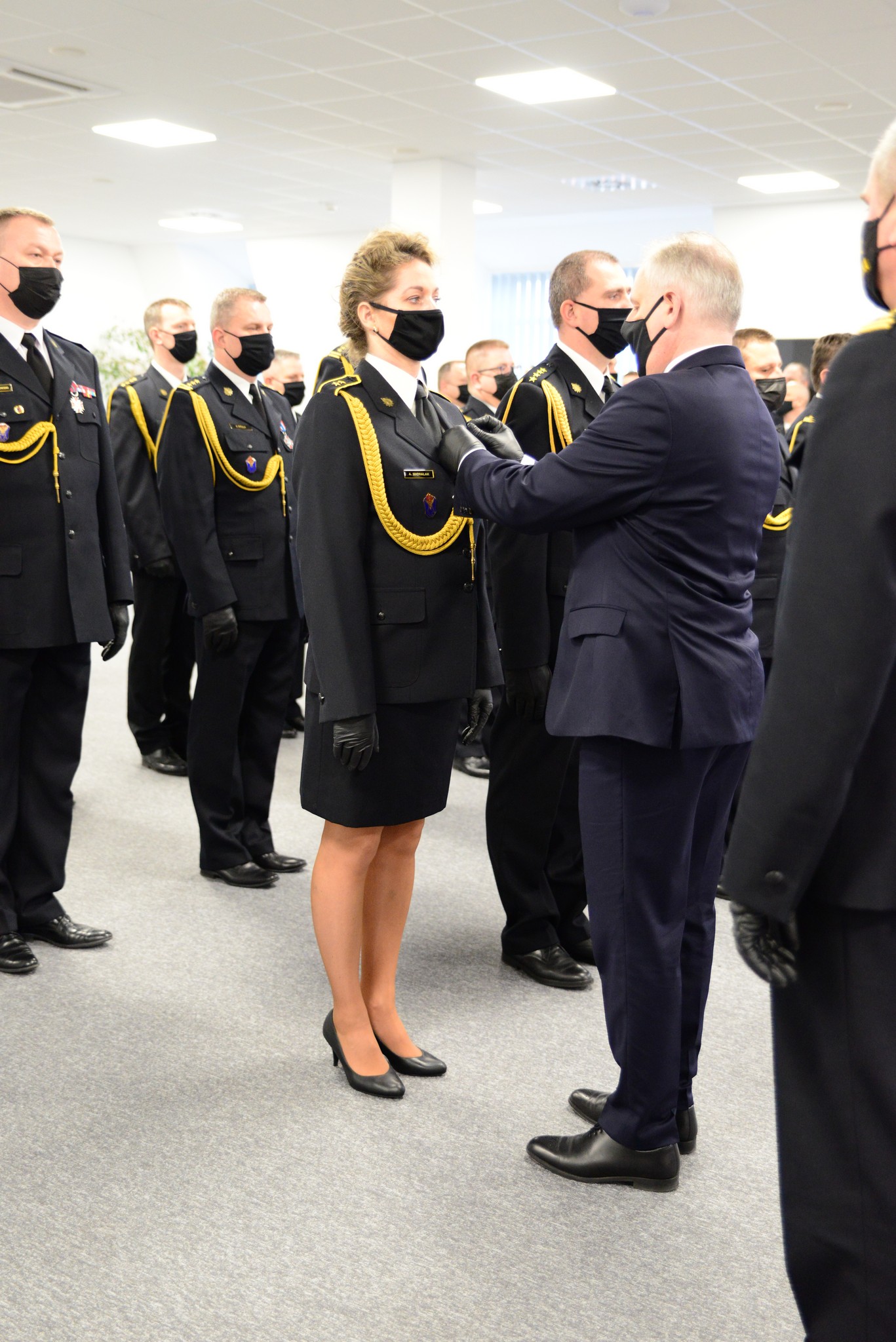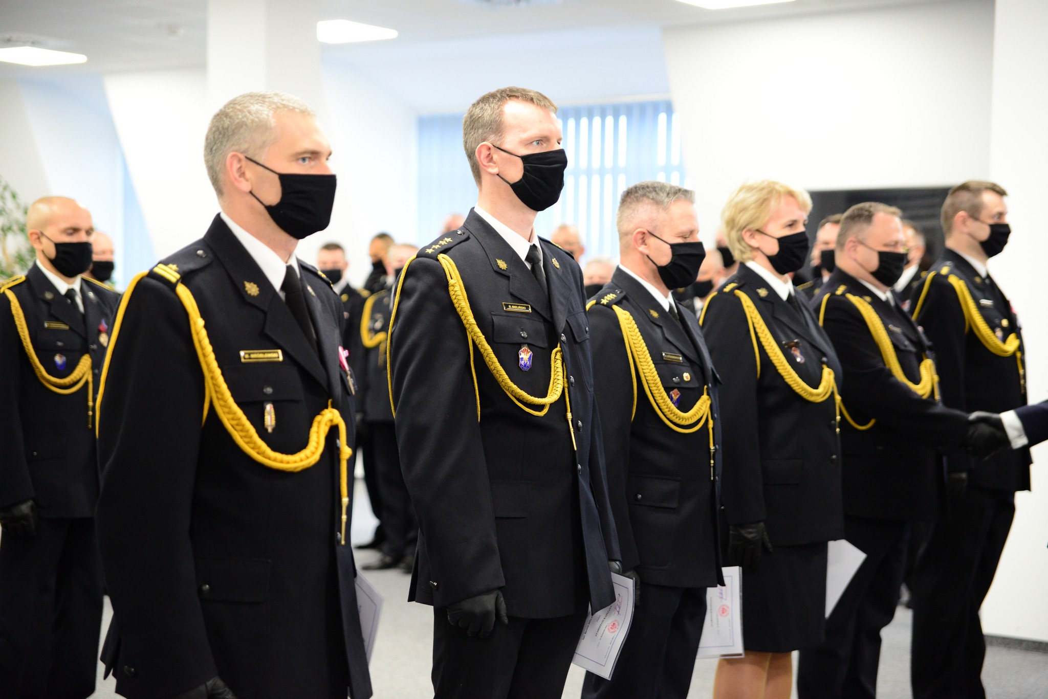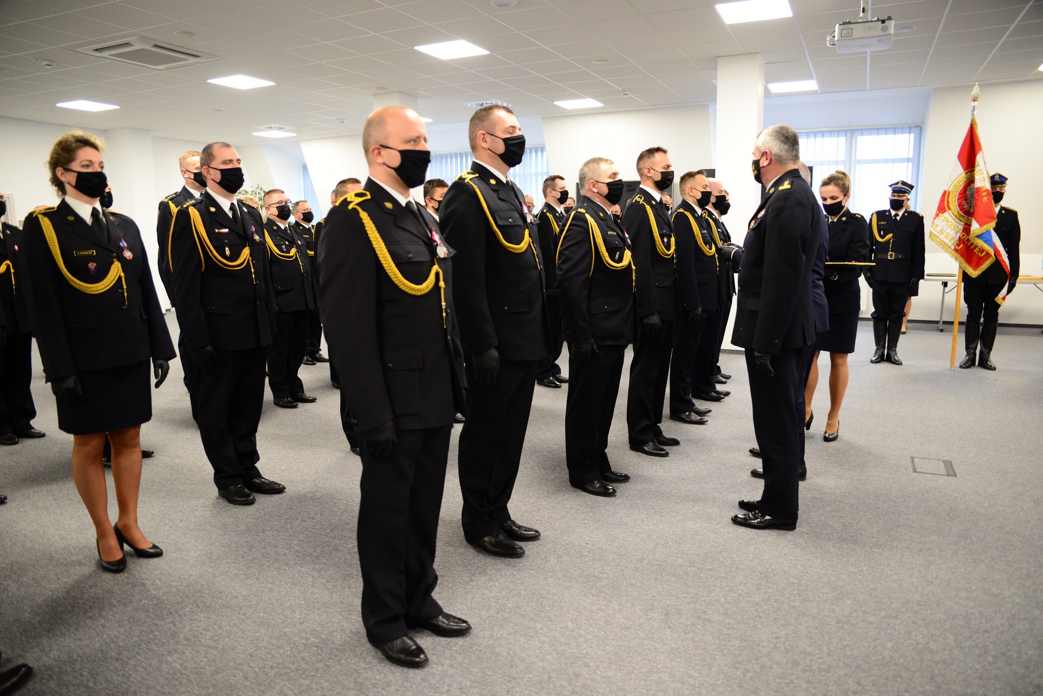 Podczas uroczystego spotkania 46 strażaków odebrało z rąk wojewody pomorskiego Dariusza Drelicha oraz pomorskiego komendanta wojewódzkiego PSP st. bryg. Piotra Sochy awanse na wyższe stopnie służbowe, nagrody i wyróżnienia z okazji Narodowego Święta Niepodległości.