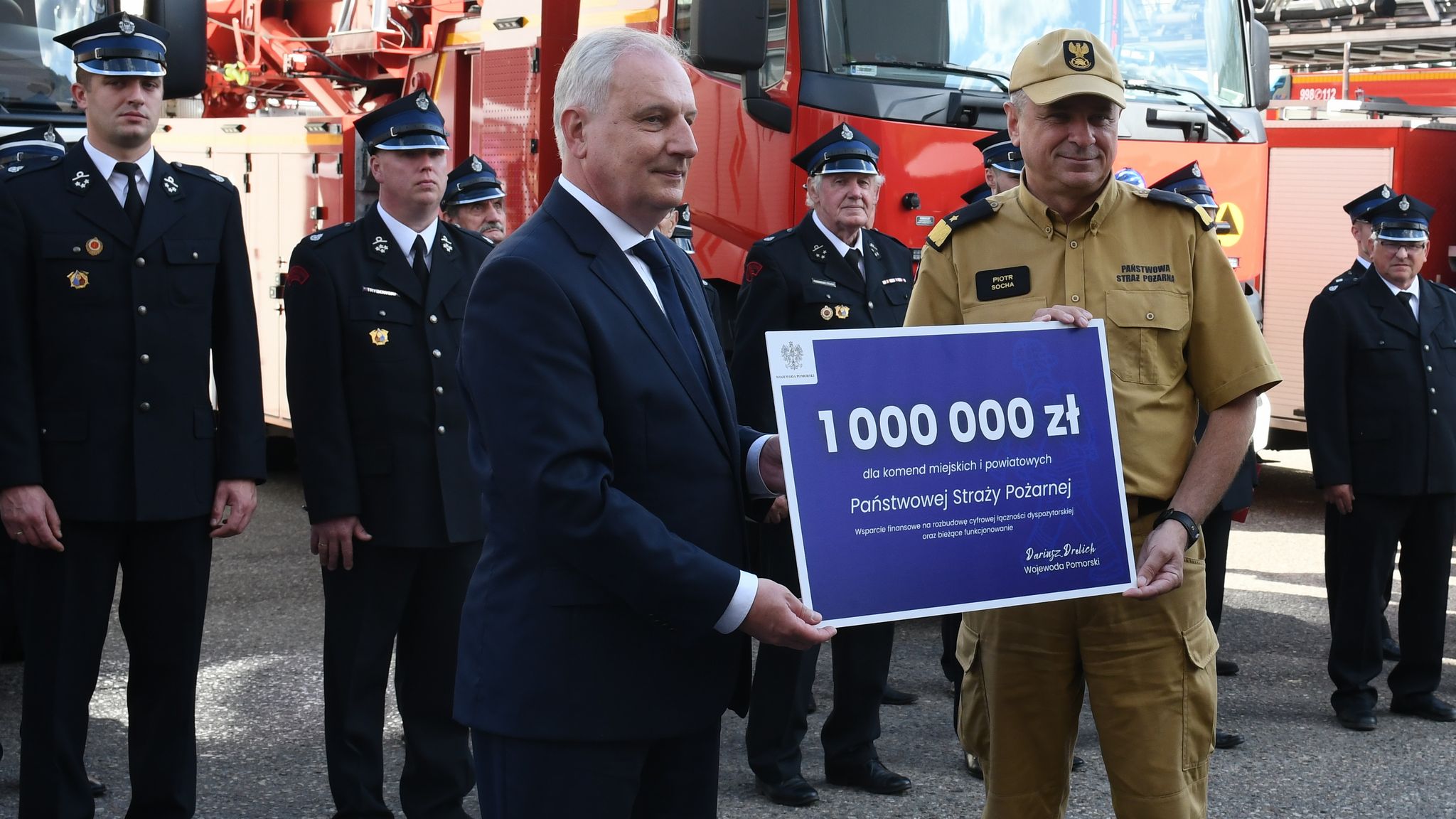 Ostatnim punktem uroczystości było przekazanie przez wojewodę pomorskiego Dariusza Drelicha wsparcia finansowego w kwocie 1 000 000,00 zł na bieżące funkcjonowanie oraz modernizację systemu łączności.