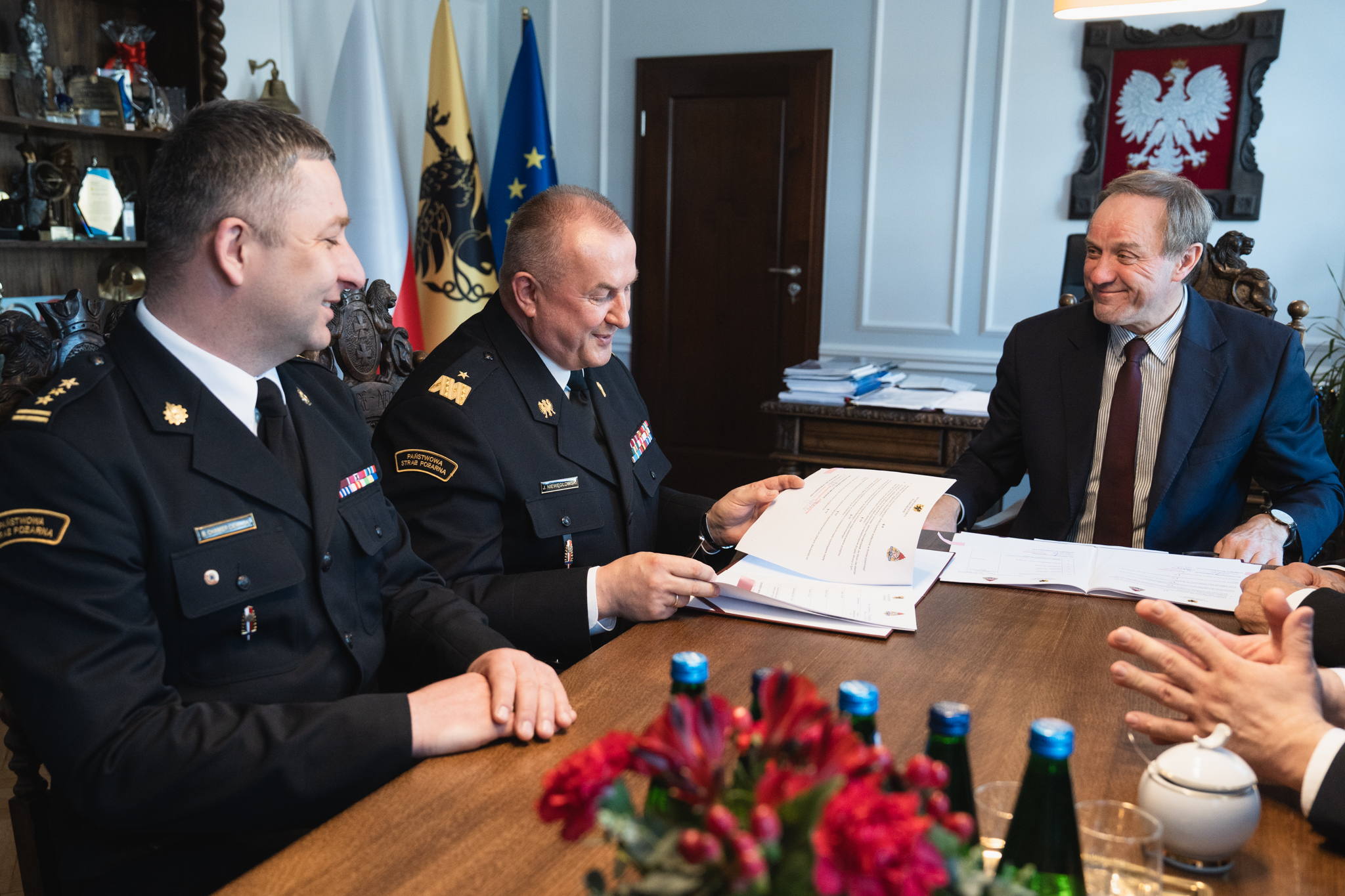 22 kwietnia 2026 roku Marszałek Mieczysław Struk oraz Adam Gawrylik – Członek Zarządu Województwa Pomorskiego – podpisali umowę na przekazanie 600 000 zł na rzecz Wojewódzkiego Funduszu Wsparcia Państwowej Straży Pożarnej.