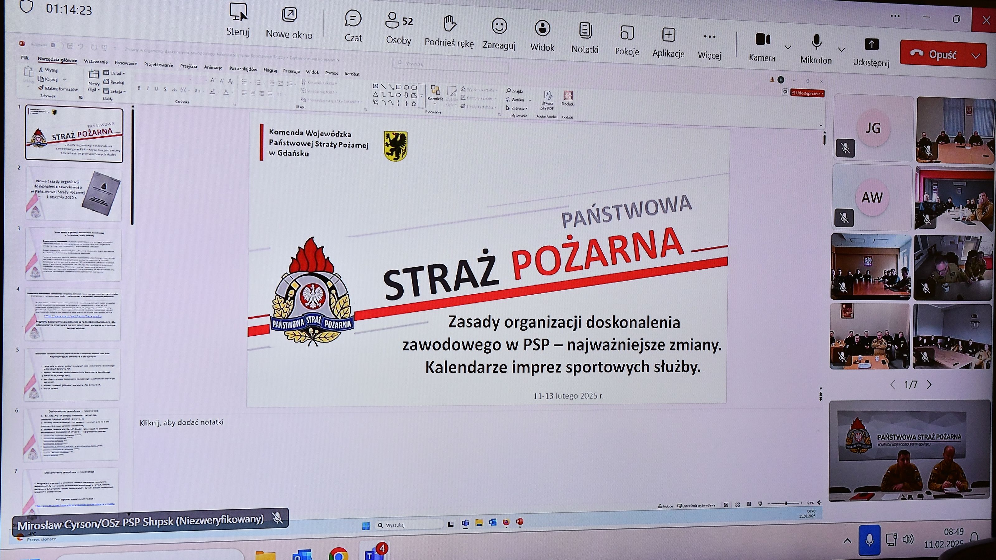W dniach 11 - 13 lutego 2025 roku w Jednostkach Ratowniczo – Gaśniczych oraz w Stanowiskach Kierowania woj. pomorskiego odbyło się kolejne szkolenie wideokonferencyjne w ramach doskonalenia zawodowego.