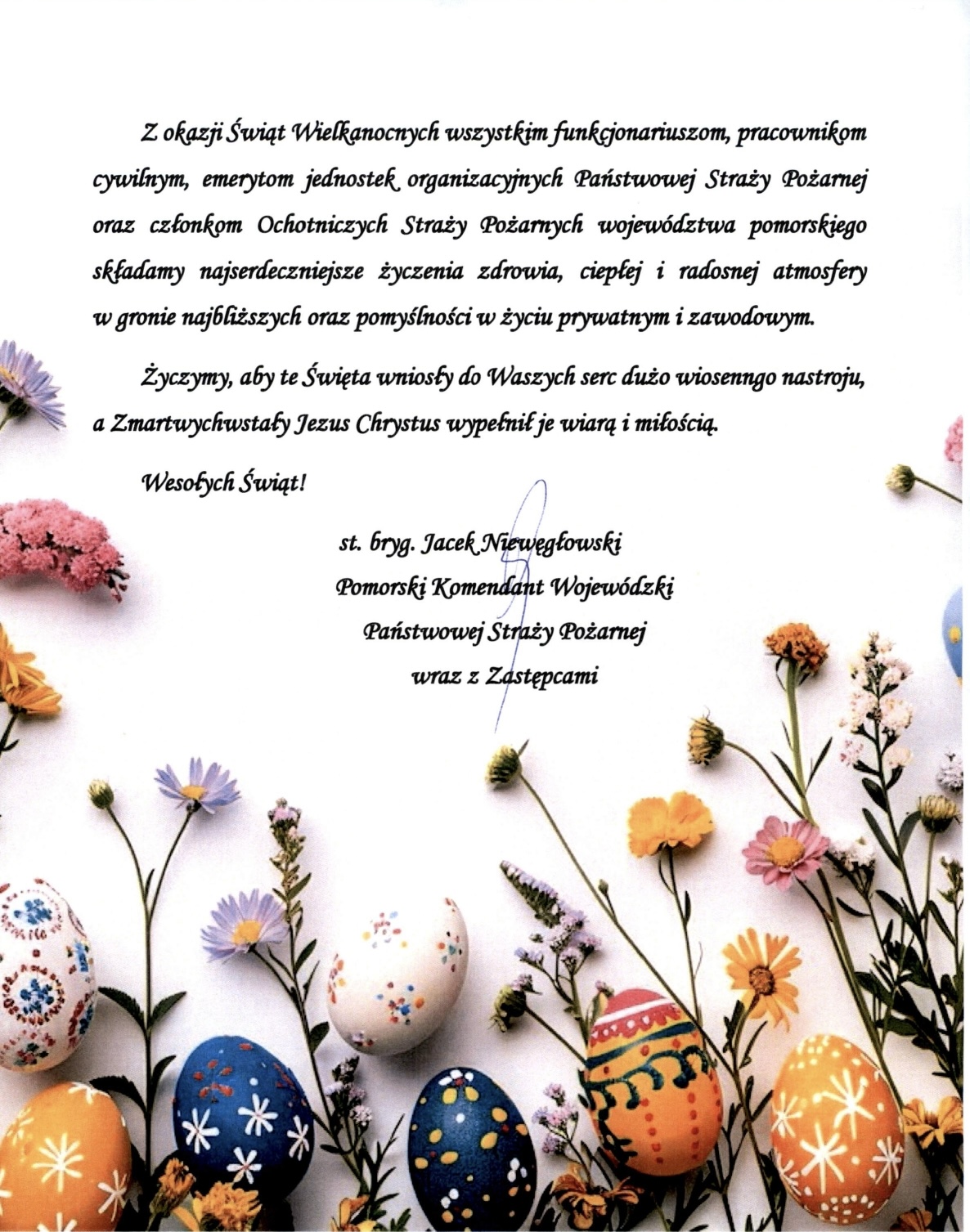 Życzenia świąteczne pomorskiego komendanta wojewódzkiego PSP 18.04.2025 Zdjęcia (1) Pokaż zdjęcie 1 z galerii.