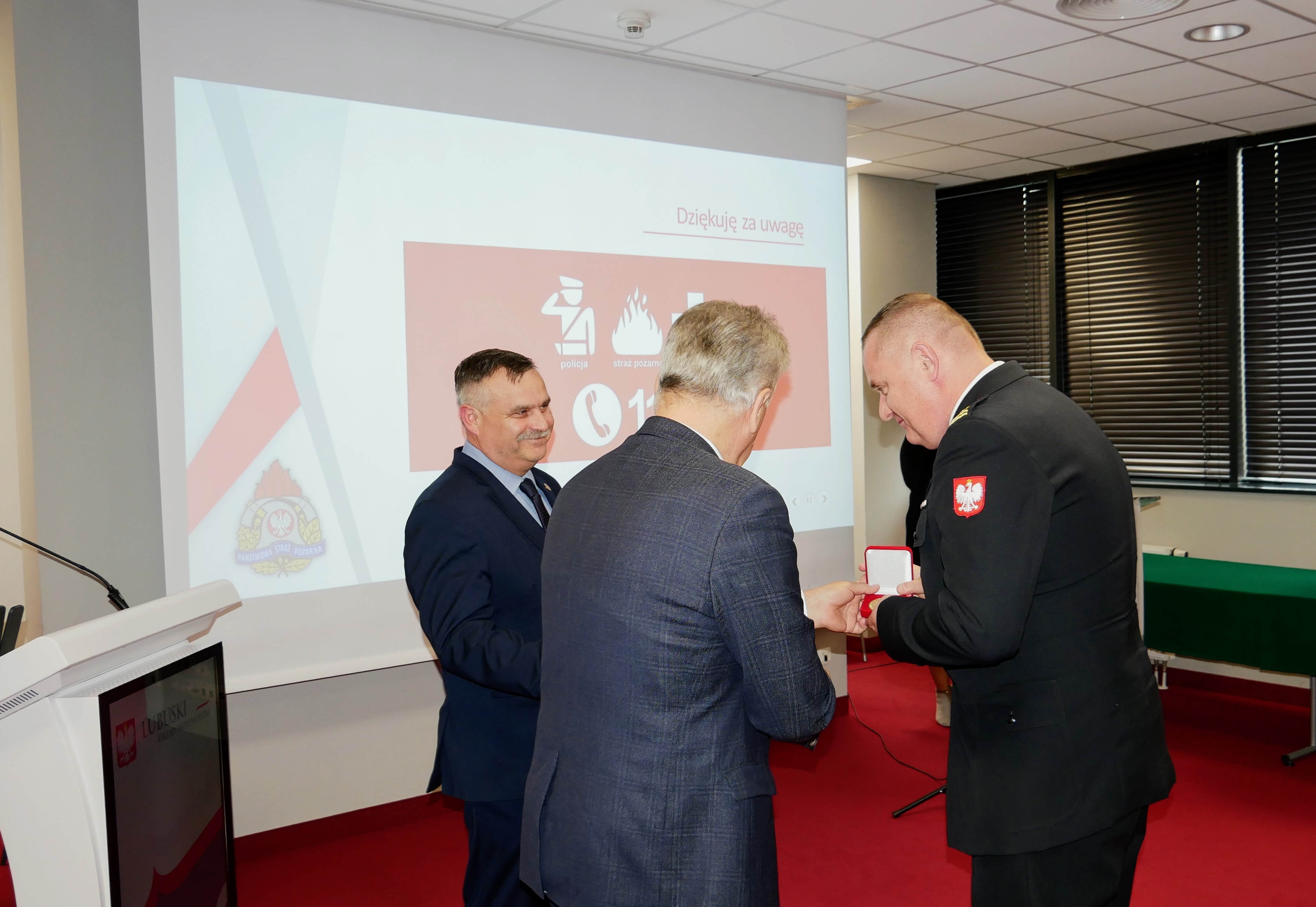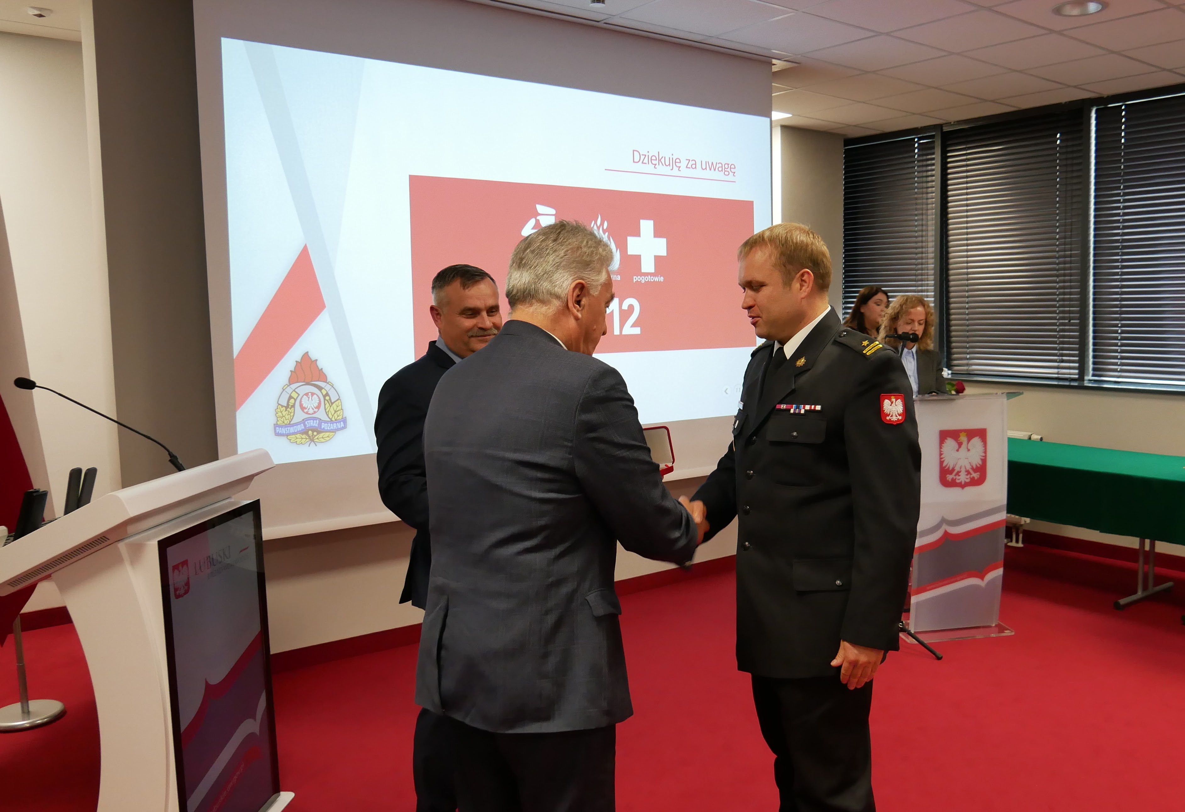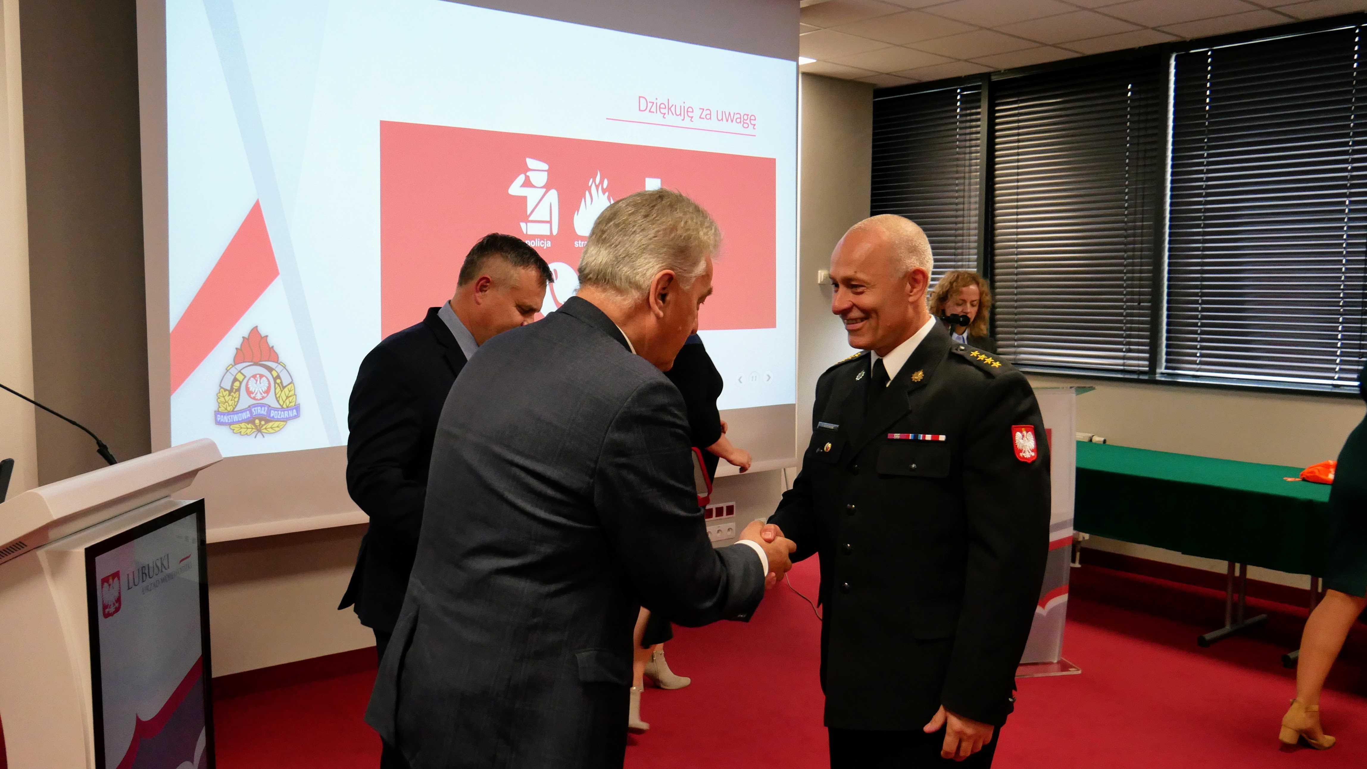 W imieniu lubuskich strażaków, podziękowania za współpracę w postaci okolicznościowej statuetki, odebrał Lubuski Komendant Wojewódzki nadbryg. Patryk Maruszak.