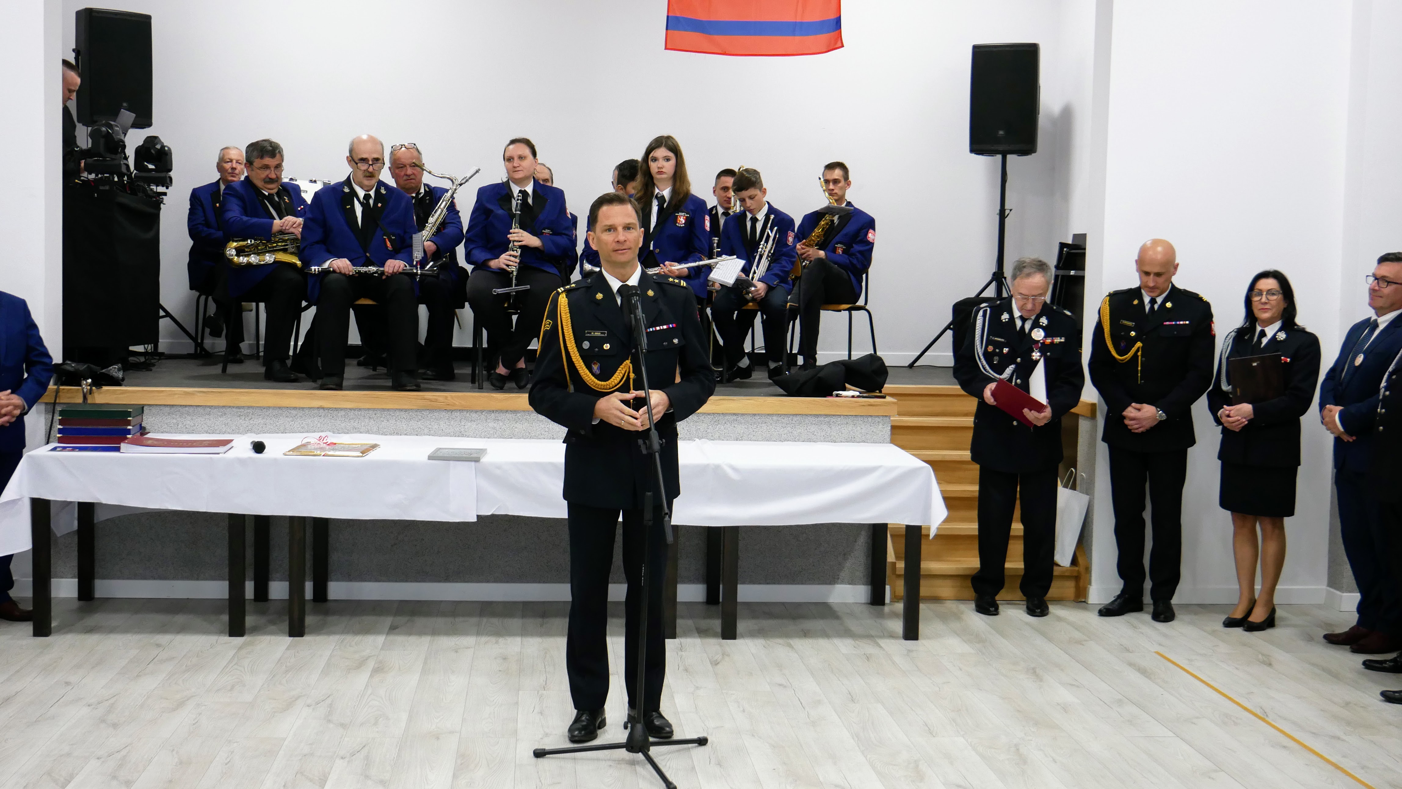 Sztandar został przekazany jednostce podczas uroczystego apelu, na którym bryg. Maciej Iwko podziękował druhnom i druhom OSP Niwica za ofiarność i trud służby oraz złożył życzenia jubileuszowe.