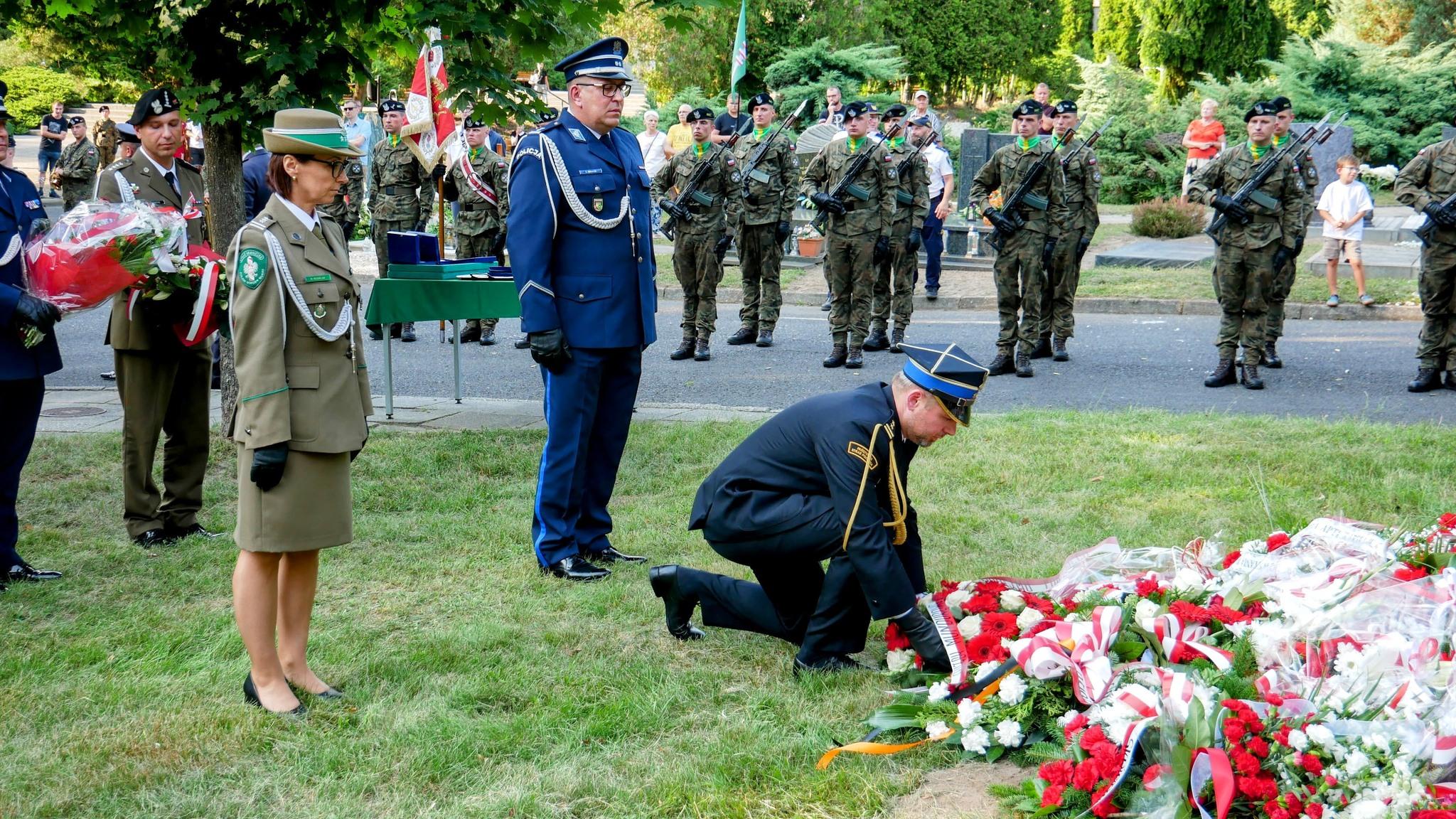 Zastępca lubuskiego komendanta wojewódzkiego Państwowej Straży Pożarnej bryg. Rafał Konieczny, komendant Nadodrzańskiego Oddziału Straży Granicznej płk SG Monika Musielak oraz zastępca komendanta wojewódzkiego Policji w Gorzowie Wielkopolskim mł. insp. Rafał Banach, złożyli kwiaty pod pomnikiem poświęconym Żołnierzom Armii Krajowej i Szarych Szeregów, oddając hołd bohaterom walczącym o wolność Ojczyzny.