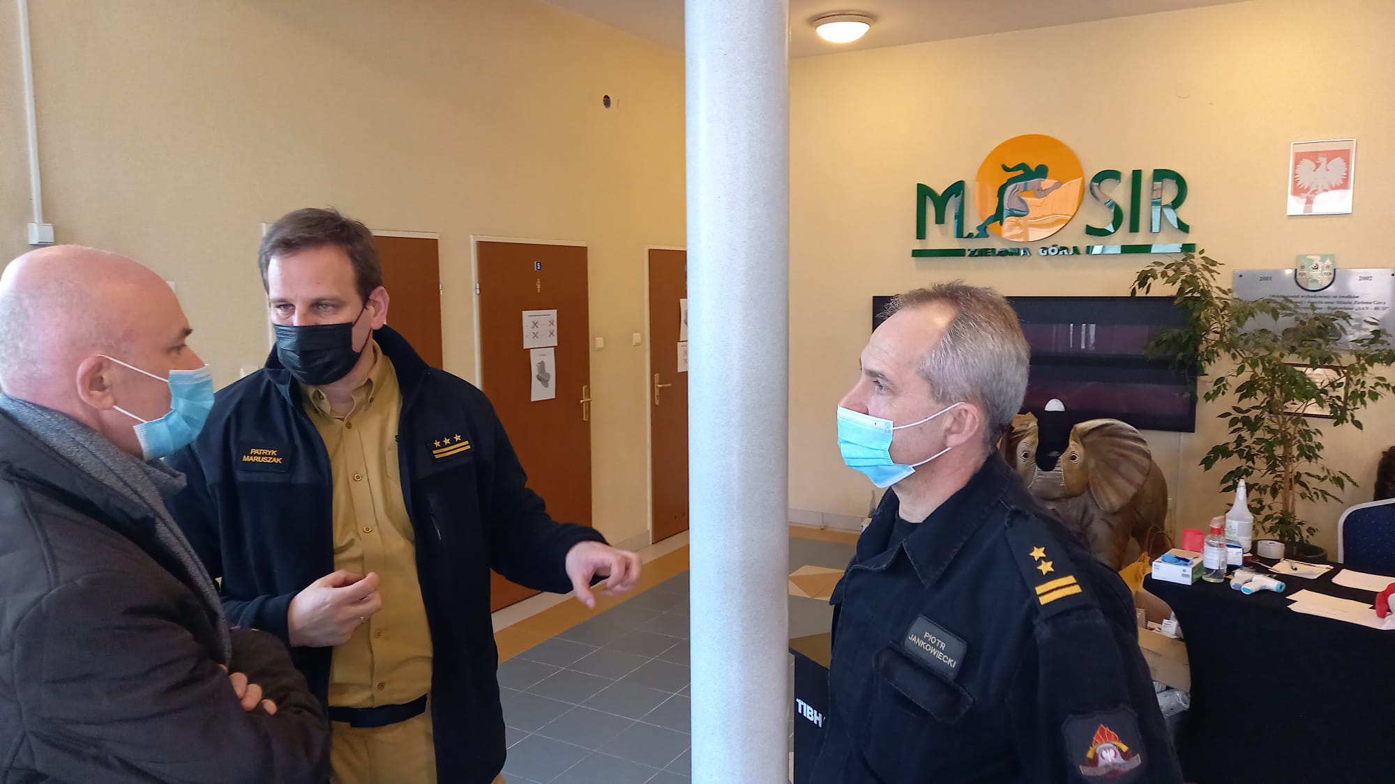 Lubuski komendant wojewódzki Państwowej Straży Pożarnej st. bryg. Patryk Maruszak dziś odwiedził dworzec PKP w Zielonej Górze gdzie zielonogórscy strażacy koordynują i zabezpieczają działania służb i instytucji w związku z kryzysem migracyjnym. Wspólnie z komendantem organizacji działań na dworcu przyglądali się również Wojewoda Lubuski Władysław Dajczak oraz Prezydent Miasta Zielonej Góry Janusz Kubicki.