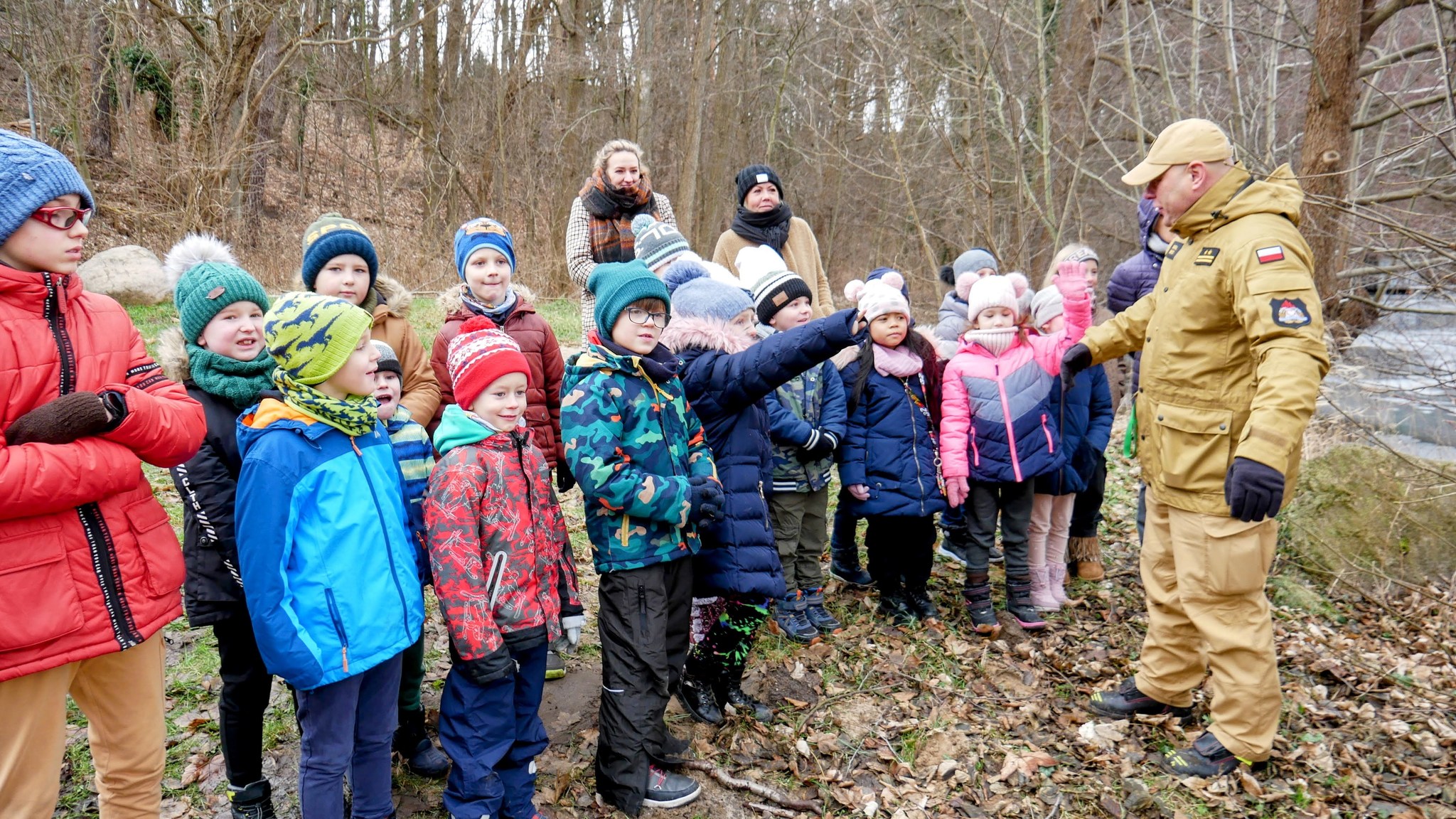 Dzieci mogły poznać podstawowe zasady bezpiecznego przebywania w pobliżu zamarzniętych rzek i jezior.