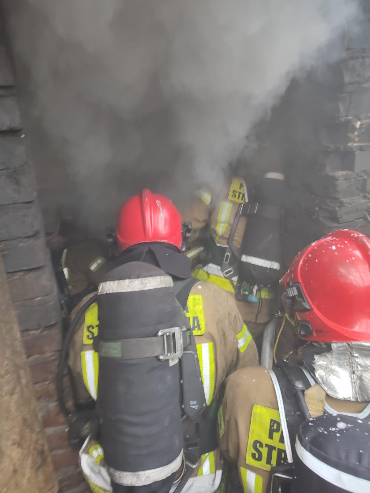 Na potrzeby ćwiczeń stworzono realne warunki odwzorowujące pożar w mieszkaniu. Strażacy gaszący pożar mieli za zadanie: