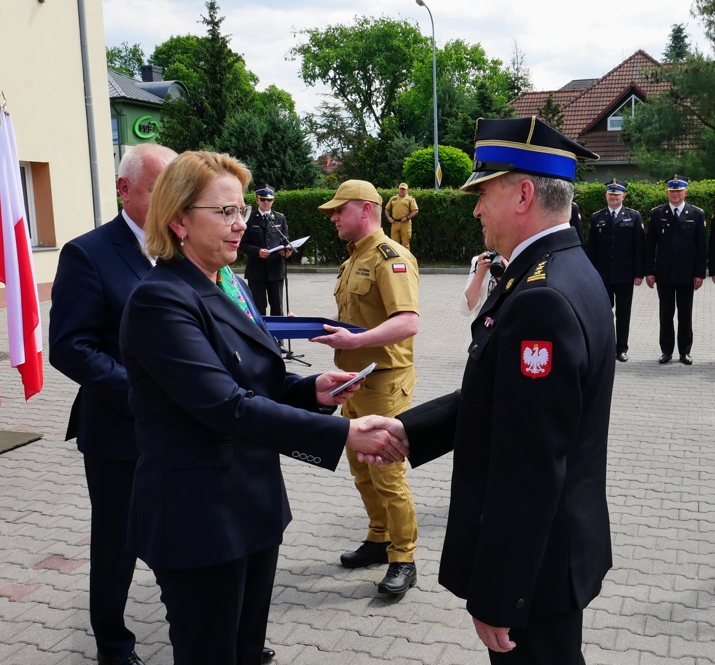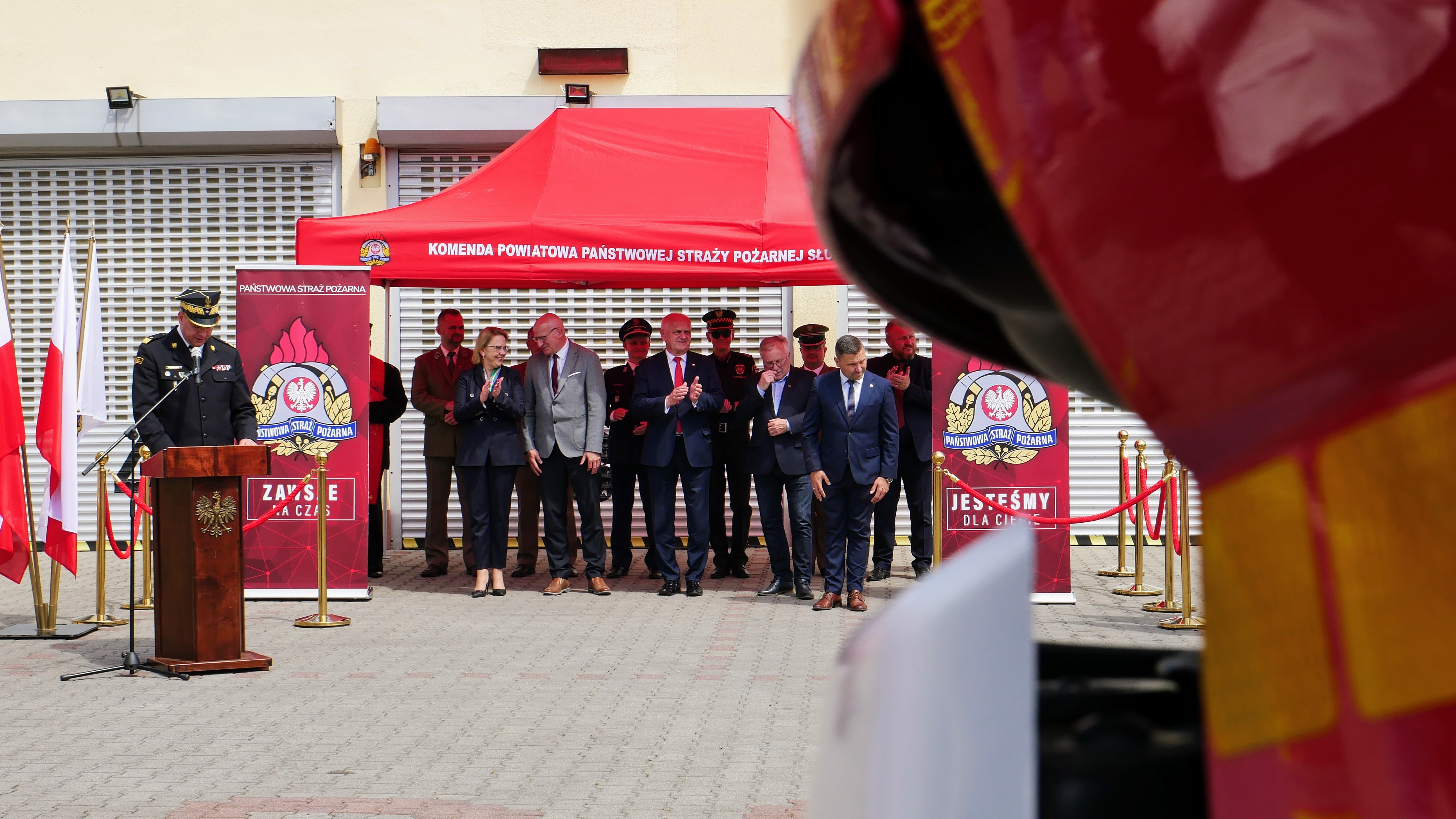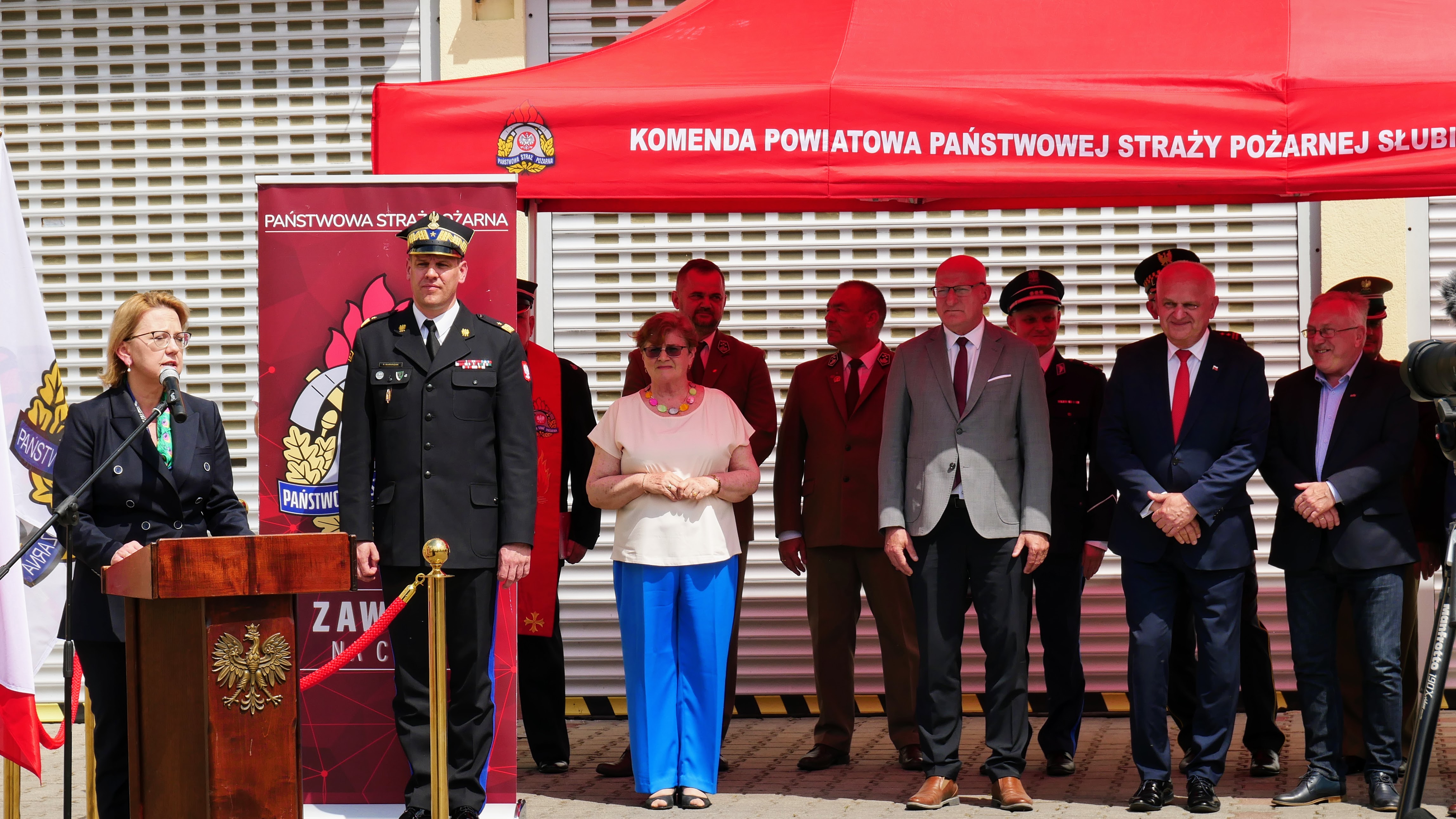 Obecna na uroczystości Minister Klimatu i Środowiska Anna Moskwa wraz z Lubuskim Komendantem Wojewódzkim nadbryg. Patrykiem Maruszakiem oraz Wojewodą Lubuskim Władysławem Dajczakiem, wręczyła akt przekazania pojazdów Komendantowi Powiatowemu PSP w Słubicach st. bryg. Wojciechowi Śliwińskiemu.