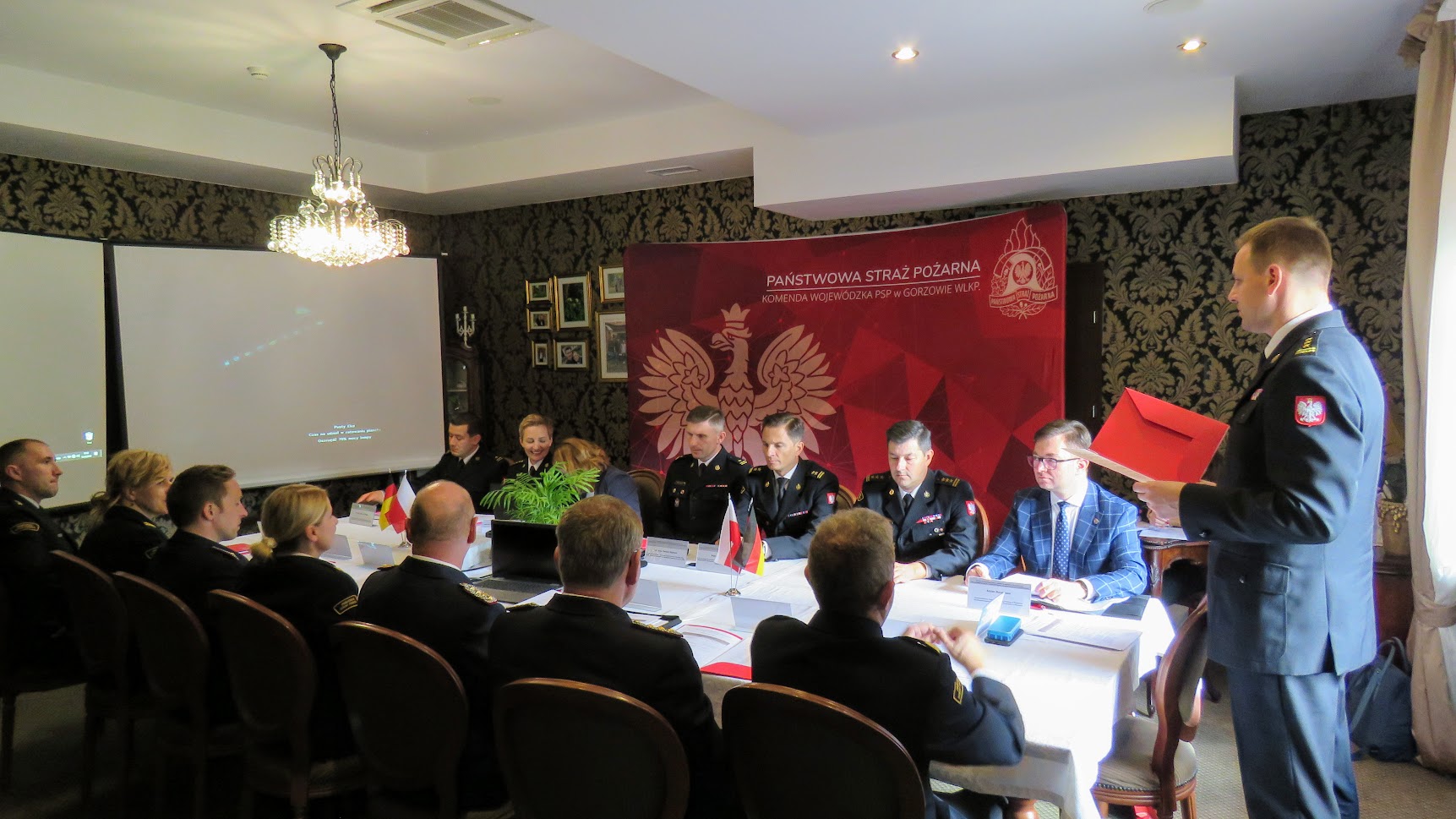Zaproszenie do udziału w obradach otrzymali ze strony niemieckiej landowi komendanci straży pożarnych oraz przedstawiciele referatów ochrony ppoż. i przed katastrof właściwych ministerstw z landów przygranicznych: Brandenburgii, Saksonii i Meklemburgii-Pomorza Przedniego oraz ze strony polskiej Przewodniczący Grupy Roboczej ds. realizacji porozumień o wzajemnej współpracy z Komendy Głównej PSP w Warszawie oraz komendanci wojewódzcy Państwowej Straży Pożarnej województw: zachodniopomorskiego i dolnośląskiego. Gospodarzem spotkania był Lubuski Komendant Wojewódzki PSP st. bryg. Patryk Maruszak, który wśród uczestników spotkania mógł powitać m.in. nadbryg. Marka Kamińskiego – Dolnośląskiego Komendanta Głównego PSP, Adriana Bucałowskiego – Zastępcę Dyrektora Biura Ochrony Ludności KG PSP, st. bryg. Marka Popławskiego – zastępcę Zachodniopomorskiego Komendanta Wojewódzkiego PSP, Michaela Kocha – komendanta straży pożarnych Brandenburgii, Heinza Rudolpha – dyrektora Landowej Szkoły Ochrony Przeciwpożarowej i przed Katastrofami w Eisenhüttenstadt.
