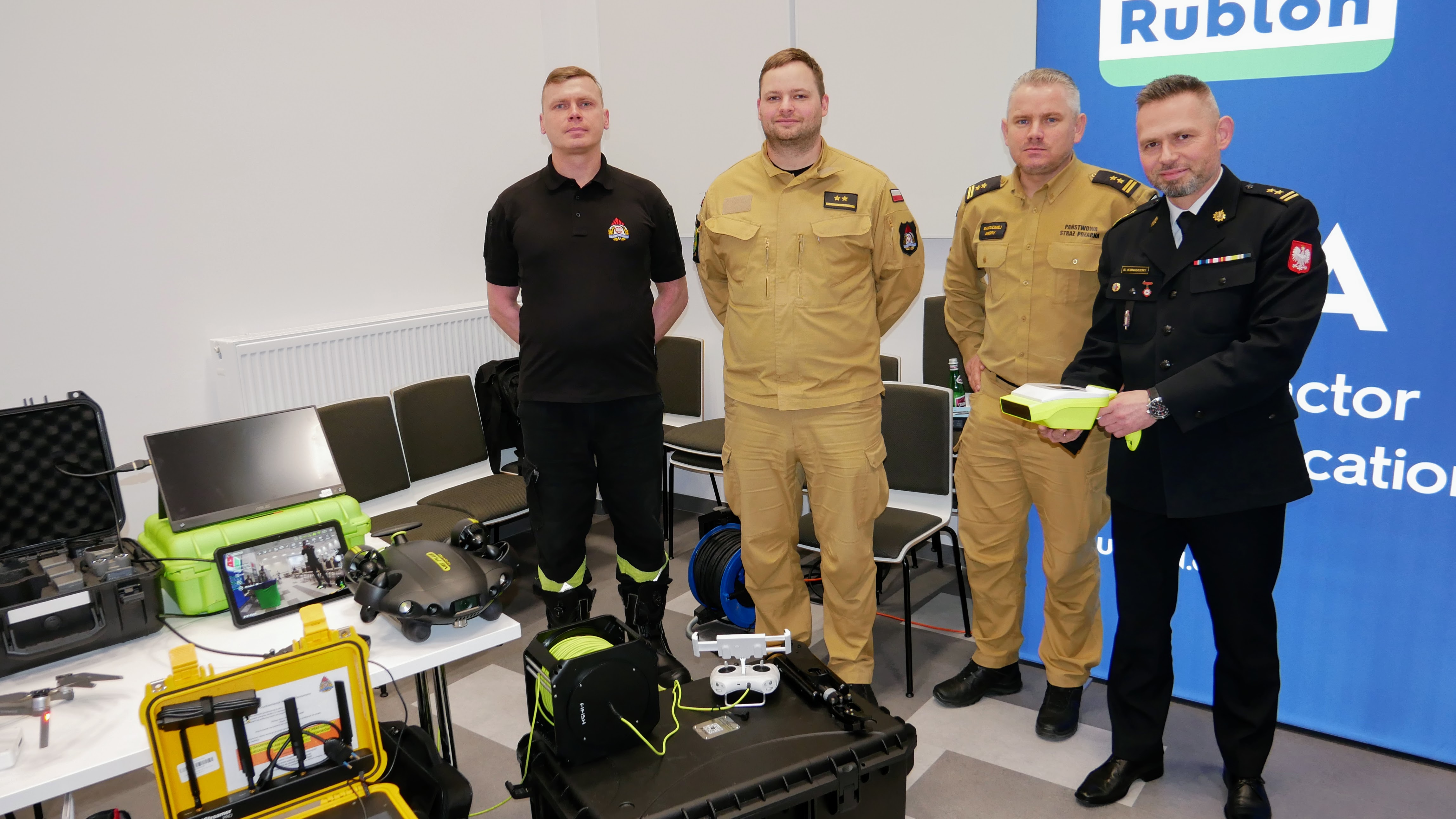 Wśród zaproszonych na spotkanie gości byli lubuscy strażacy, którzy zaprezentowali sprzęt ratowniczy wykorzystujący zaawansowane algorytmy sztucznej inteligencji. Specjaliści z Grupy Pilotów Dronów Komendy Wojewódzkiej Państwowej Straży Pożarnej w Gorzowie Wielkopolskim oraz Specjalistycznej Grupy Ratownictwa Wodno-Nurkowego PSP z Zielonej Góry, zaprezentowali narzędzia, dzięki którym w szybki i bezpieczny dla ratowników sposób, można zlokalizować osobę znajdującą się pod wodą lub zaginioną w lesie, a następnie udzielić jej niezbędnej pomocy.