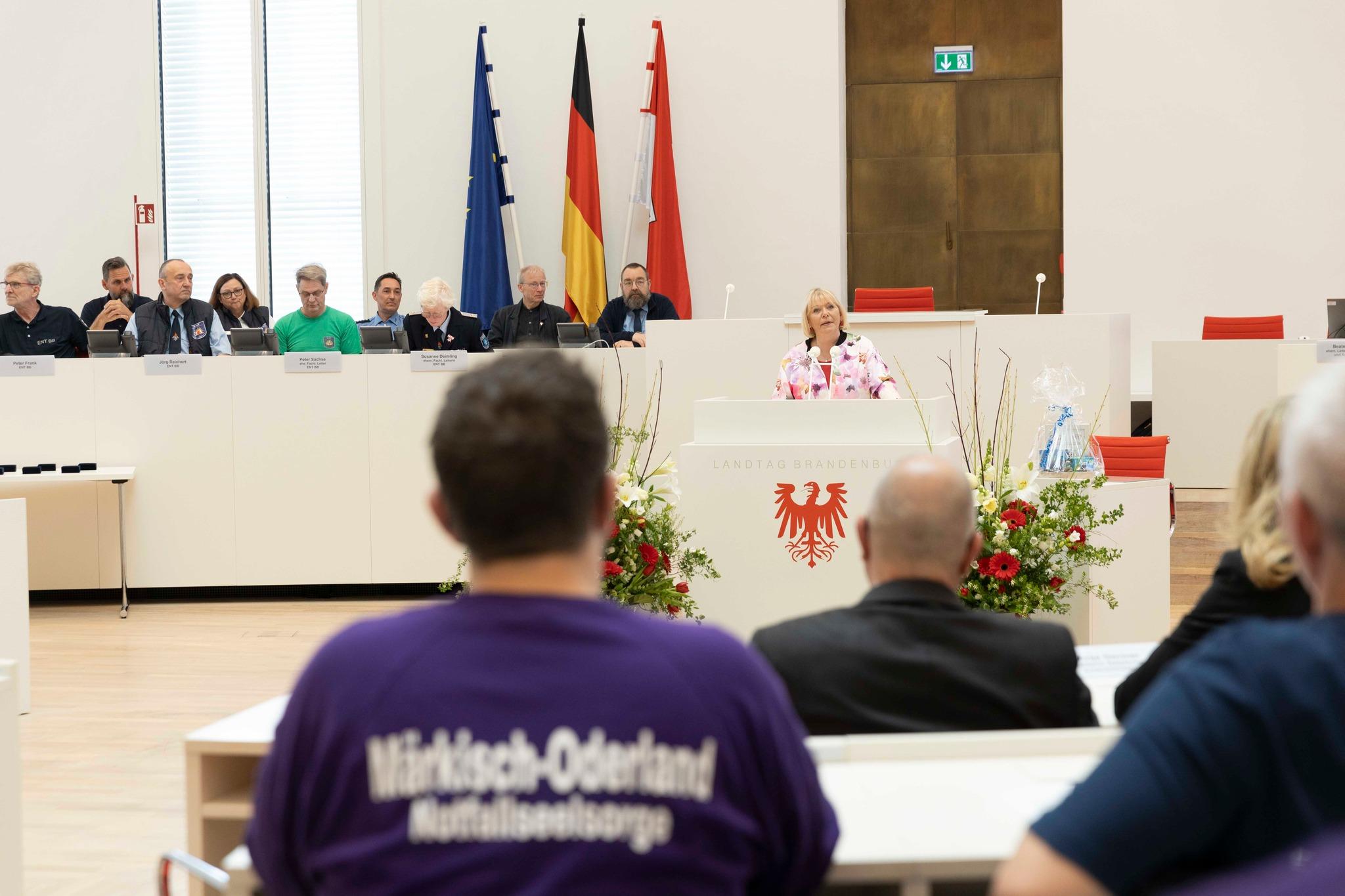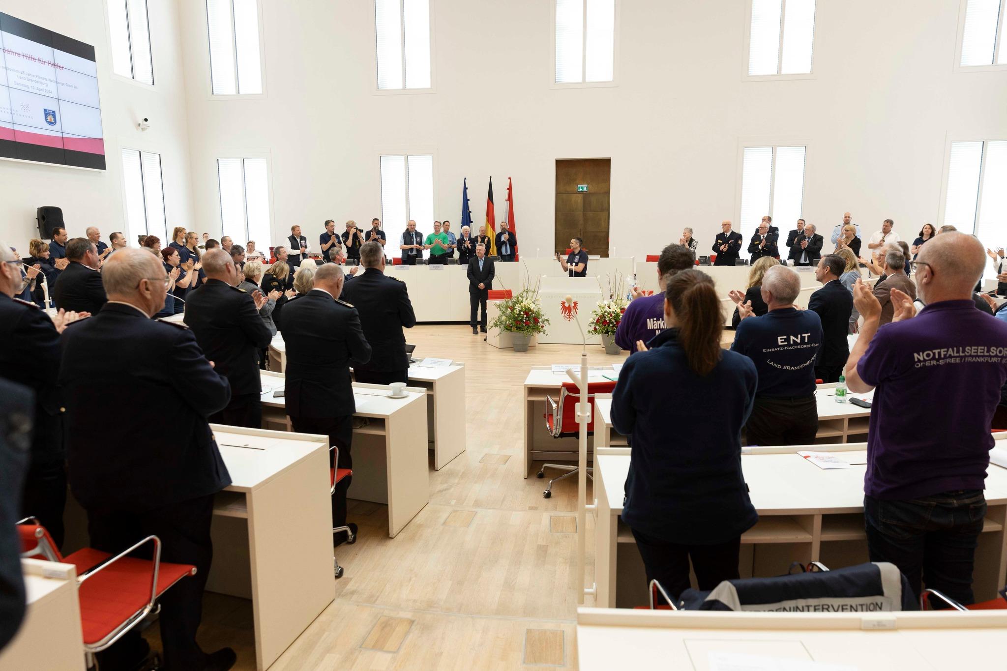 13 kwietnia 2024r. delegacja KW PSP w Gorzowie Wlkp. w składzie: psycholog Iwona Skórzewska i mł. bryg. Magdalena Kuska wzięły udział w jubileuszu 25-lecia Einsatz-Nachsorge-Team Brandenburg (Zespołu Wsparcia Psychologicznego Brandenburgii), który odbył się w sali plenarnej brandenburskiego parlamentu w Poczdamie.