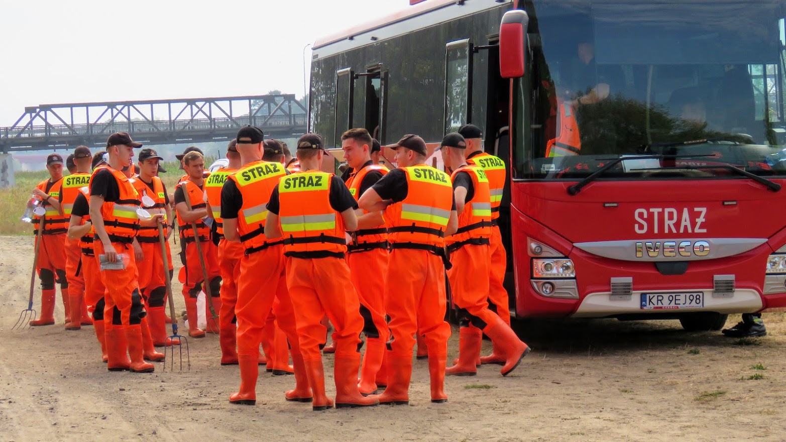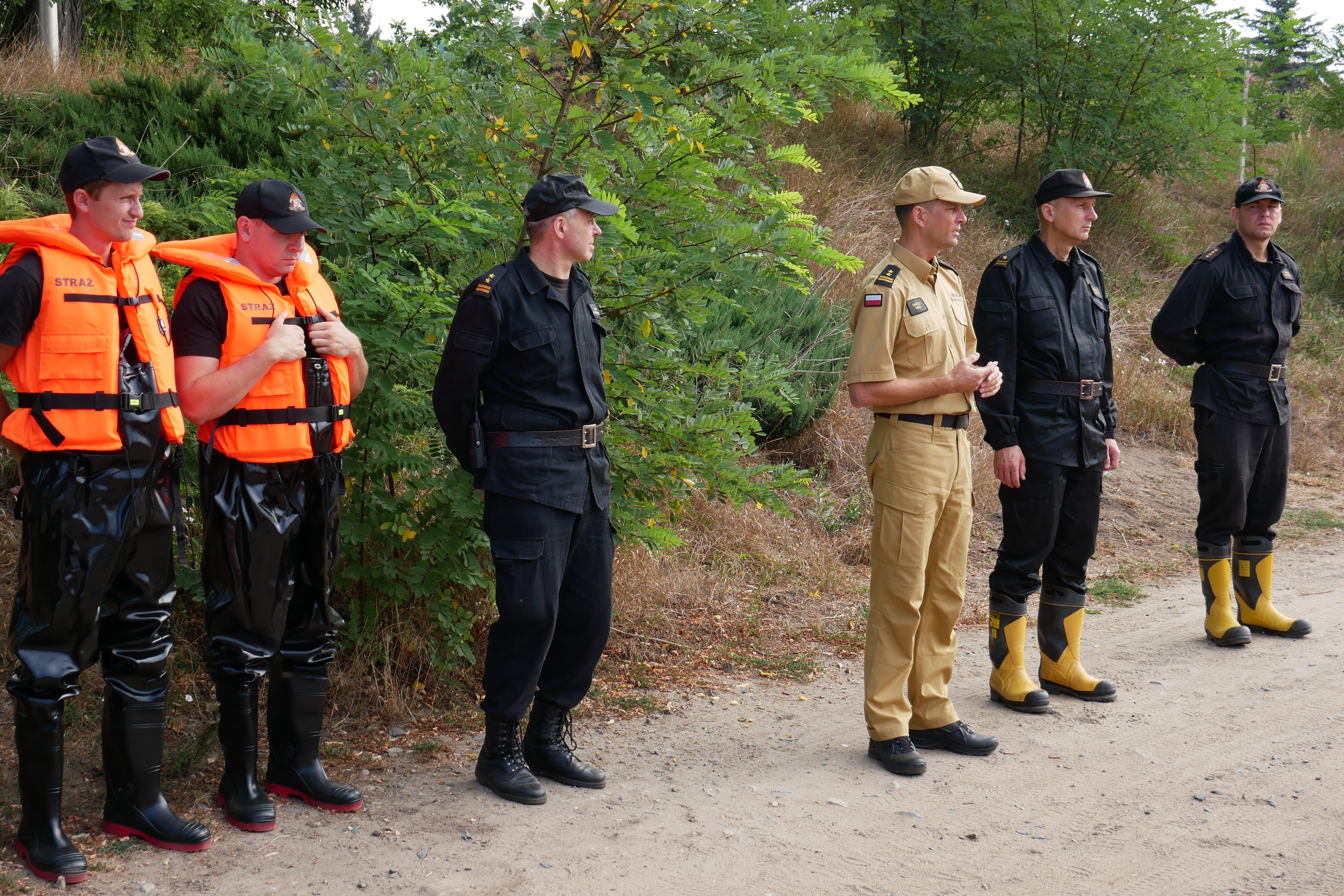 W dniu dzisiejszym zastępca lubuskiego komendanta wojewódzkiego Państwowej Straży Pożarnej bryg. Maciej Iwko w asyście naczelnika wydziału operacyjnego Komendy Wojewódzkiej Państwowej Straży Pożarnej w Gorzowie Wlkp. mł. bryg Dariusza Szymury wizytowali miejsca dzialań strażaków usuwających skutki katastrofy ekologicznej na rzece Odra w powiatach zielonogórskim, słubickim i gorzowskim. Podczas porannej odprawy służbowej na brzegu rzeki Orda w miejscowości Cigacice bryg. Maciej Iwko podziękował w imieniu lubuskiego komendanta wojewódzkiego PSP st. bryg. Patryka Maruszaka przybyłym do pomocy w ramach dyspozycji Centralnego Odwodu Operacyjnego kadetom ze Szkoły Aspirantów PSP w Krakowie i Centralnej Szkoły PSP w Częstochowie. Przekazano słowa uznania za zaangażowanie i ciężką prace jaką wykonują ww. strażacy ratując lubuską przyrodę.