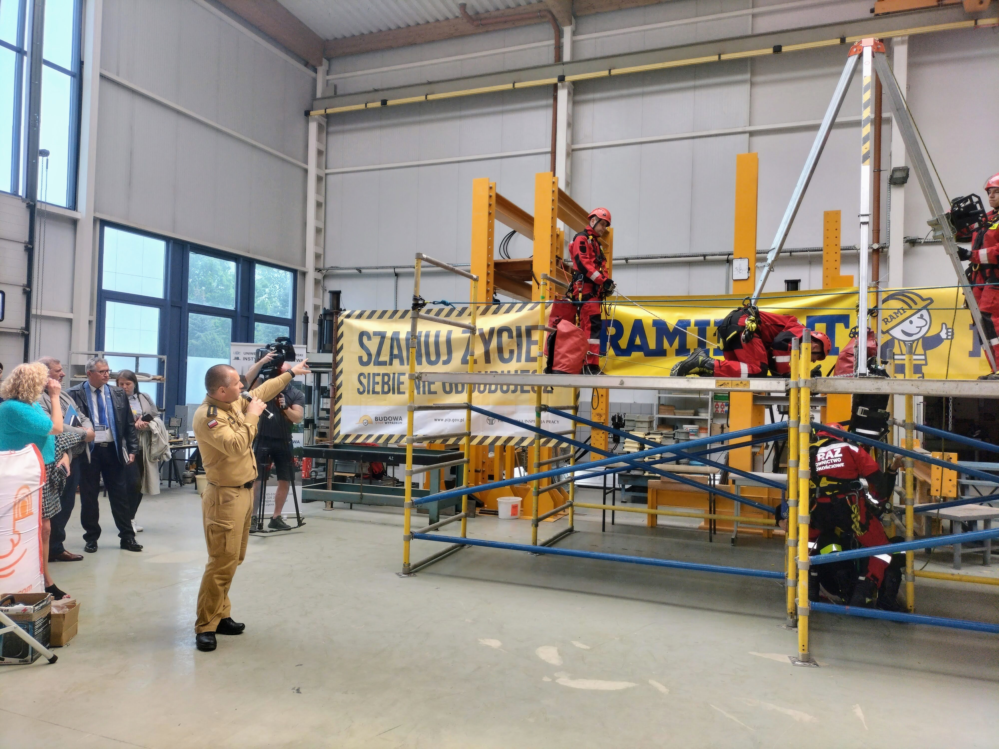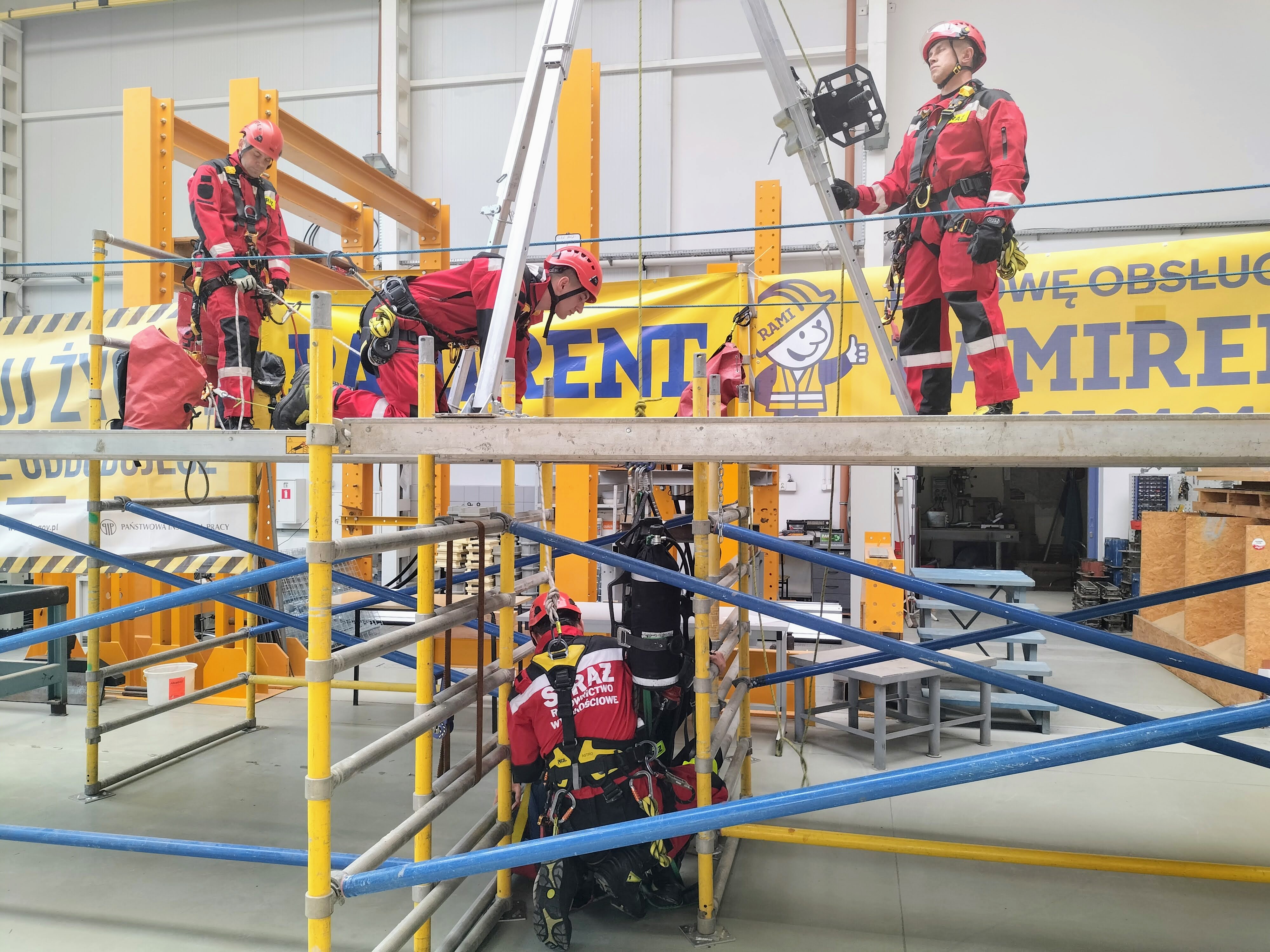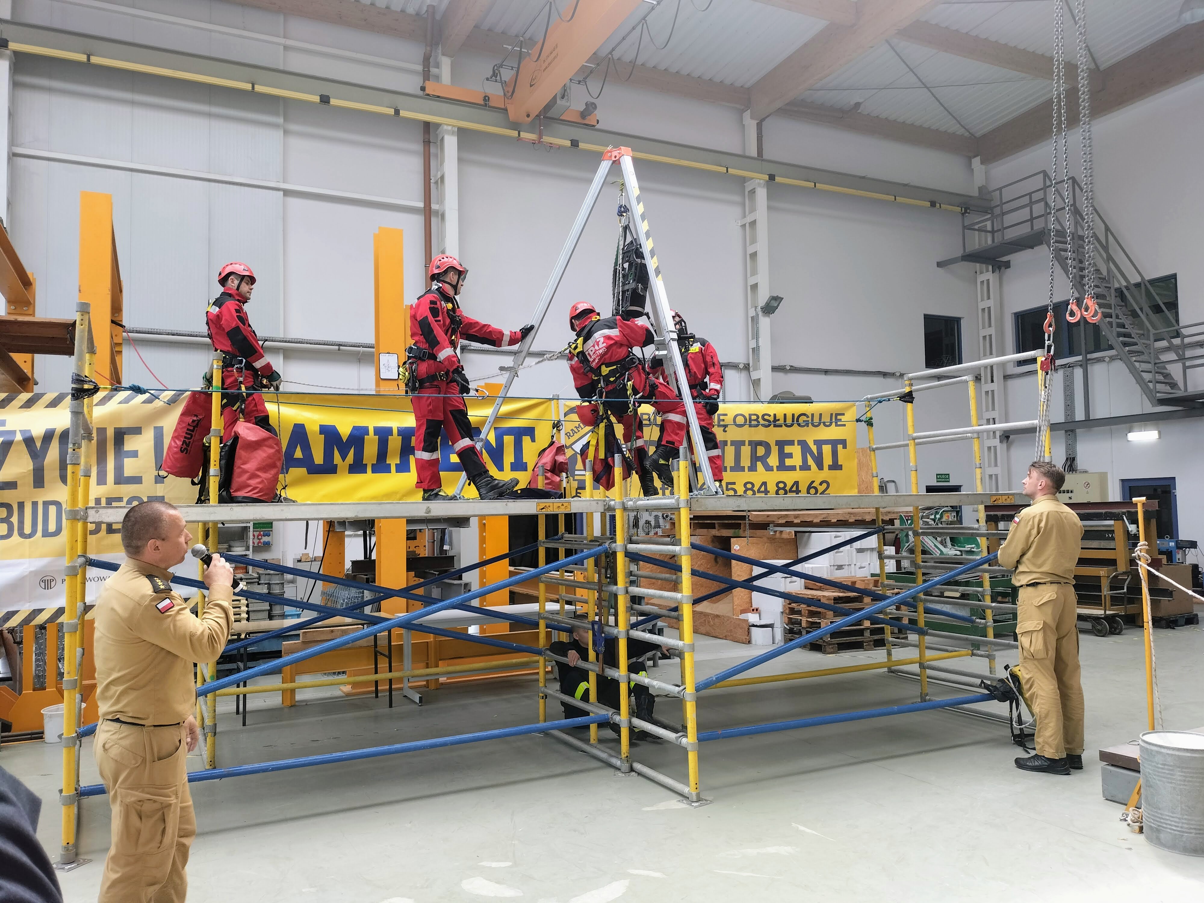Zademonstrowano sposoby ewakuacji osób z dużych wysokości oraz techniki ratowania poszkodowanych uwięzionych w wykopach lub studniach.
