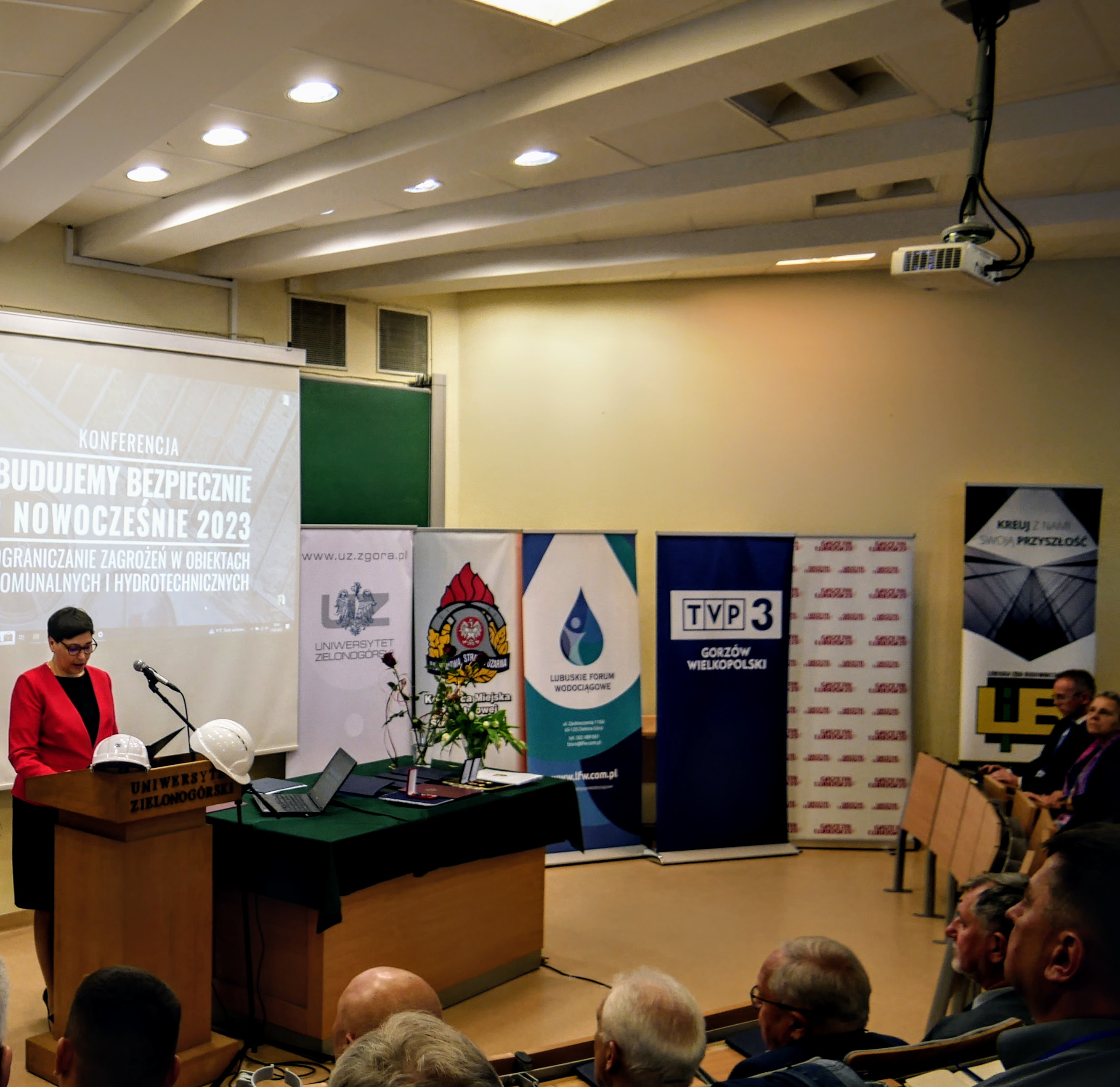 17 maja 2023r. Zastępca Lubuskiego Komendanta Wojewódzkiego PSP st. bryg. Krystian Kosela wraz z Zastępcą Komendanta Miejskiego PSP w Zielonej Górze bryg. Rafałem Koniecznym, brali udział w konferencji „Budujemy Bezpiecznie i Nowocześnie - Ograniczanie zagrożeń w obiektach komunalnych i hydrotechnicznych”, która odbyła się na Wydziale Budownictwa, Architektury i Inżynierii Środowiska Uniwersytetu Zielonogórskiego.