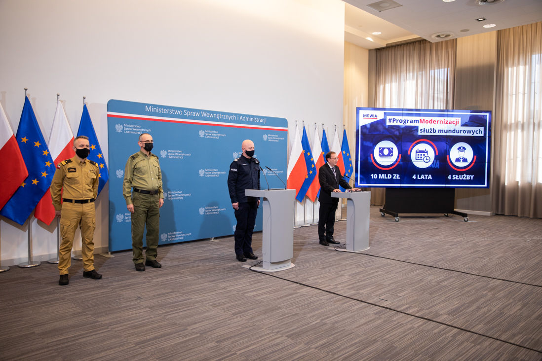 Minister Mariusz Kamiński podczas konferencji z udziałem komendantów głównych formacji podległych MSWiA przedstawiał założenia "Programu modernizacji Policji, Straży Granicznej, Państwowej Straży Pożarnej i Służby Ochrony Państwa w latach 2022-2025". Zgodnie z zapowiedziami budżet nowej ustawy modernizacyjnej na cztery lata ma wynieść 10 mld 30 mln złotych.